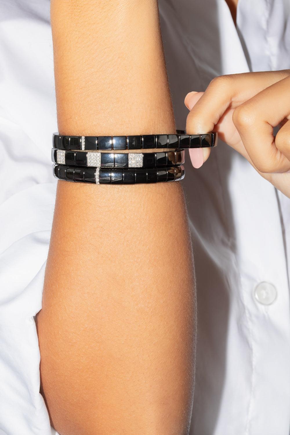 Robert Demeglio pura ceramic diamond bars bracelet in white gold.