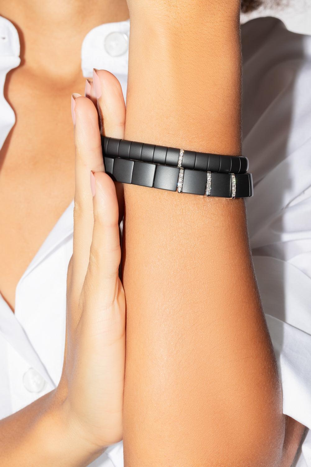 Roberto Demeglio three diamond domino matte black ceramic stretch bracelet in white gold.