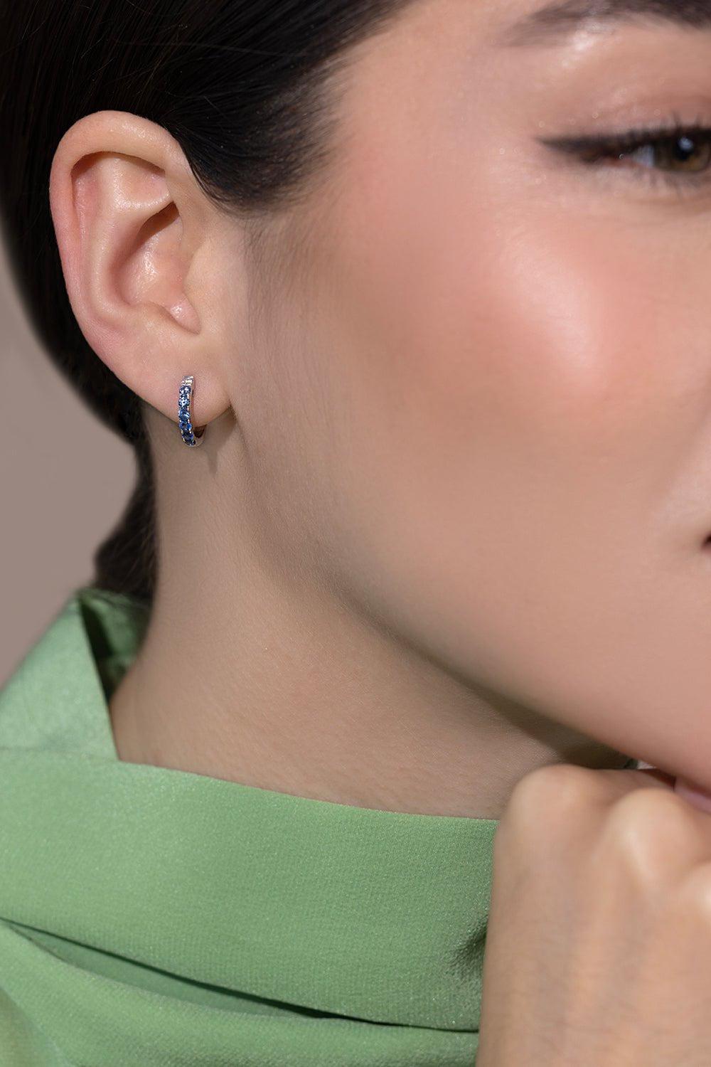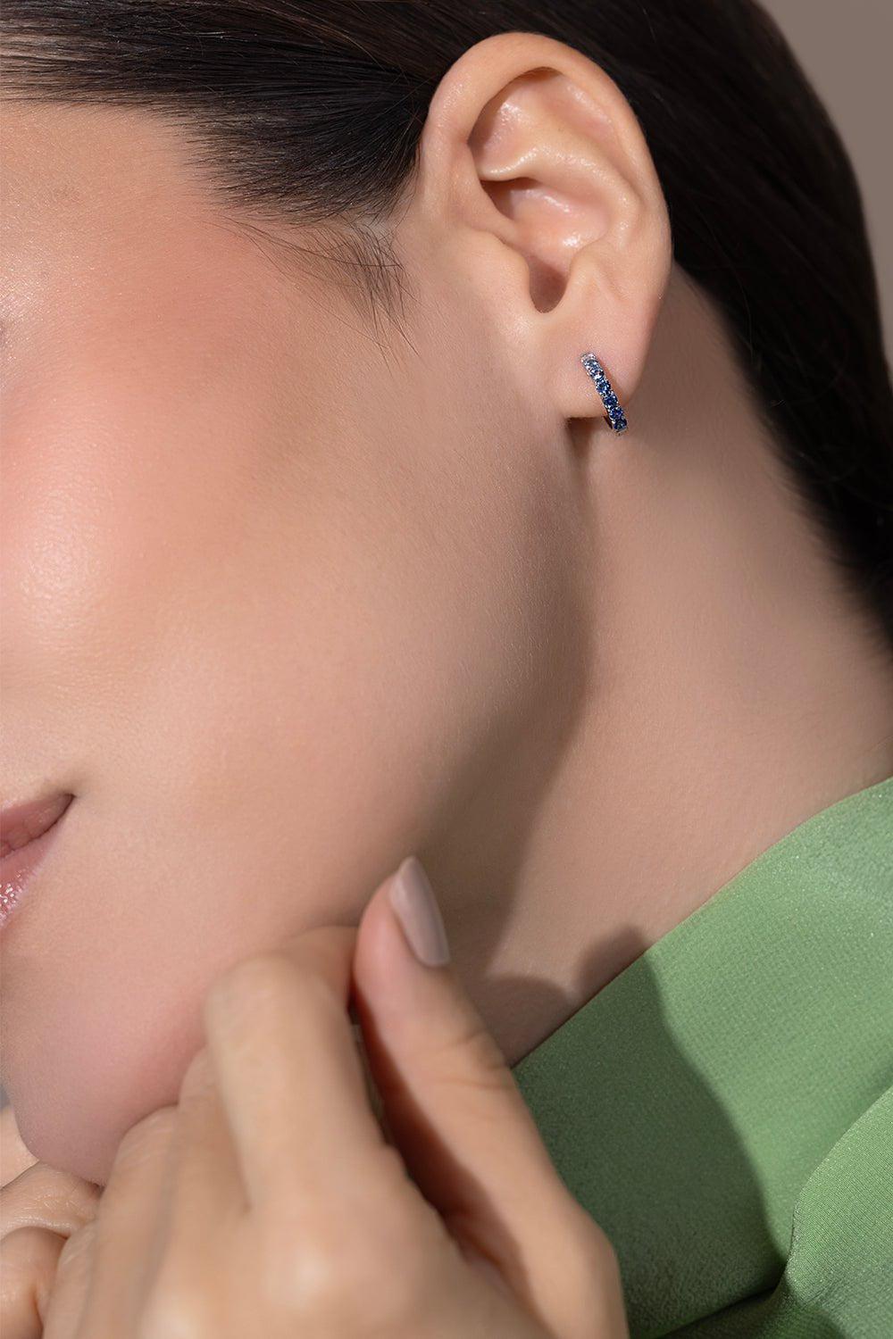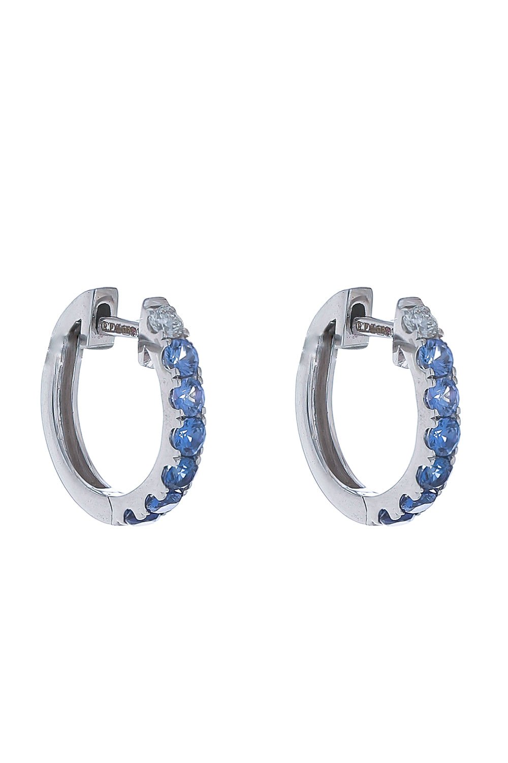 Robinson Pelham orb midi diamond blue sapphire hoop earrings in white gold.