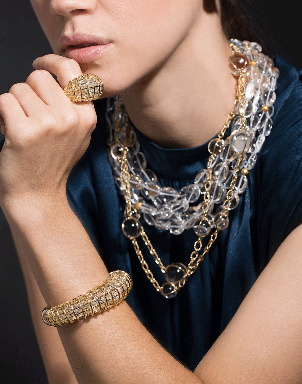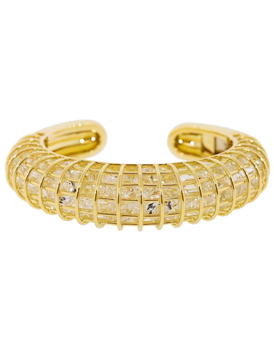 Verdura rock crystal caged cuff set in 18k yellow gold.