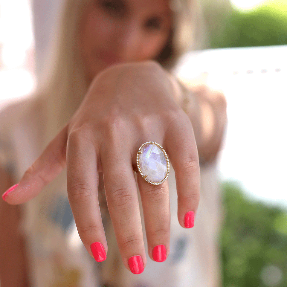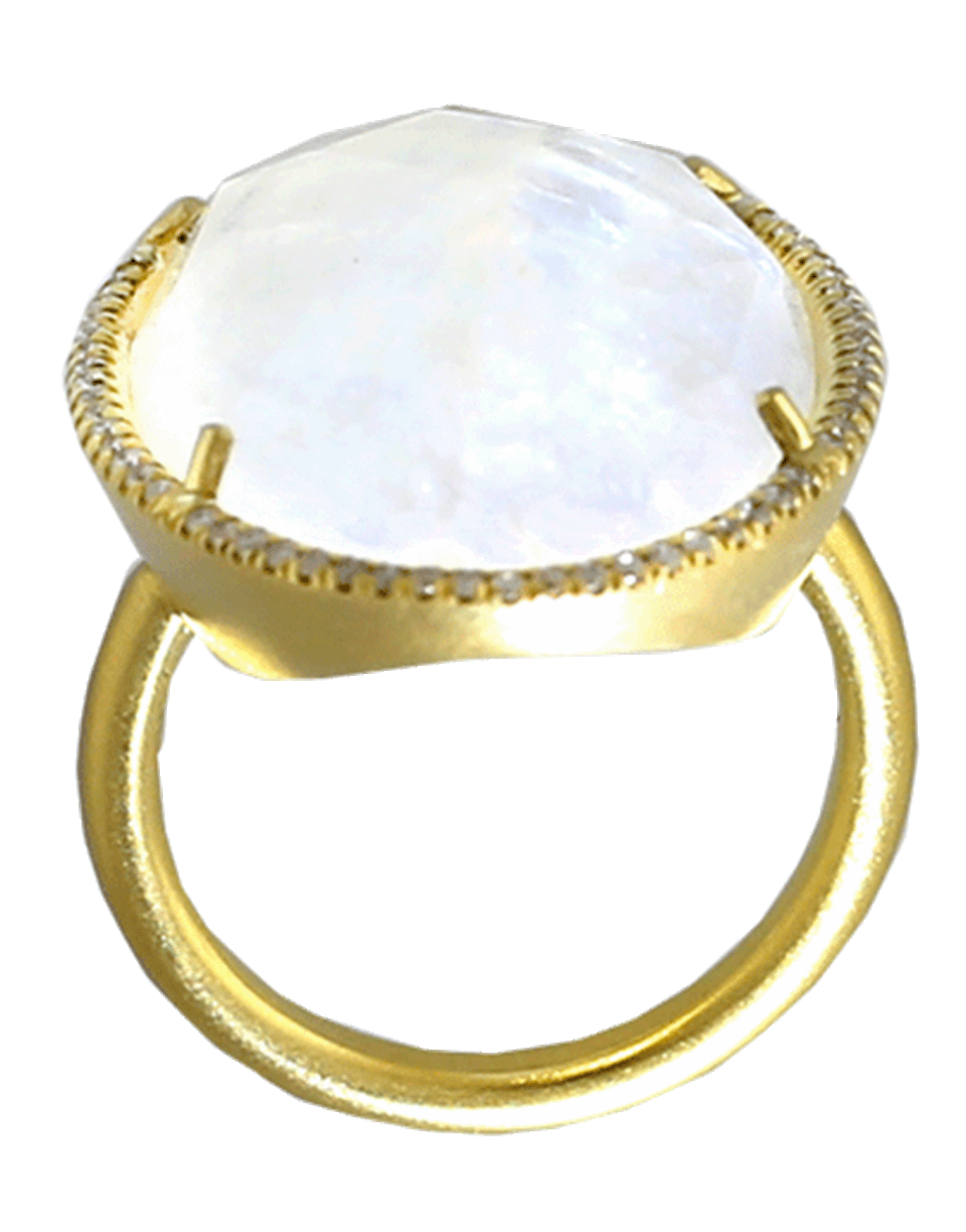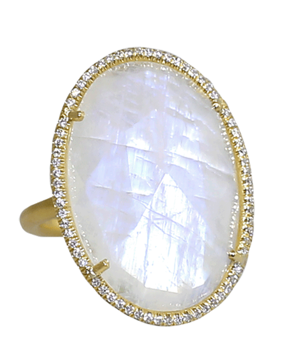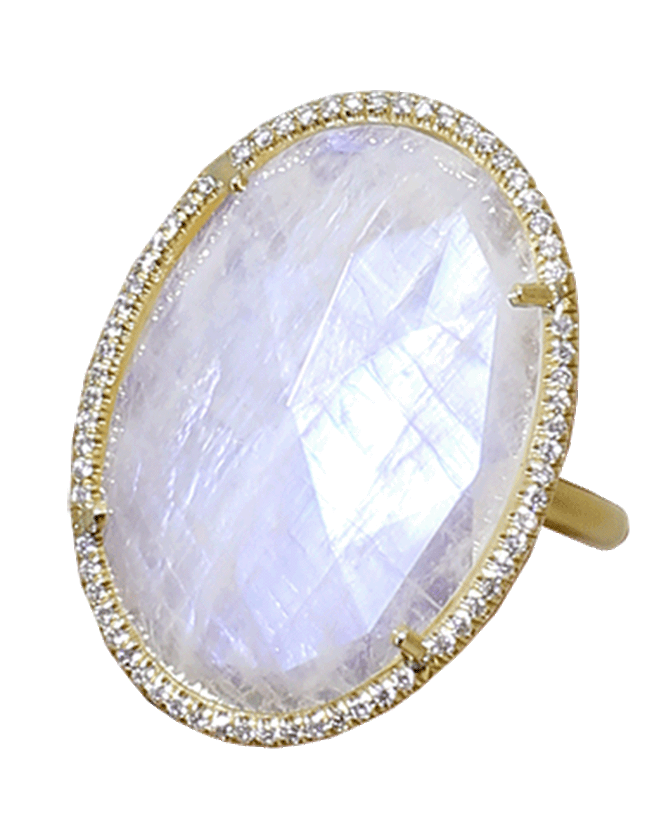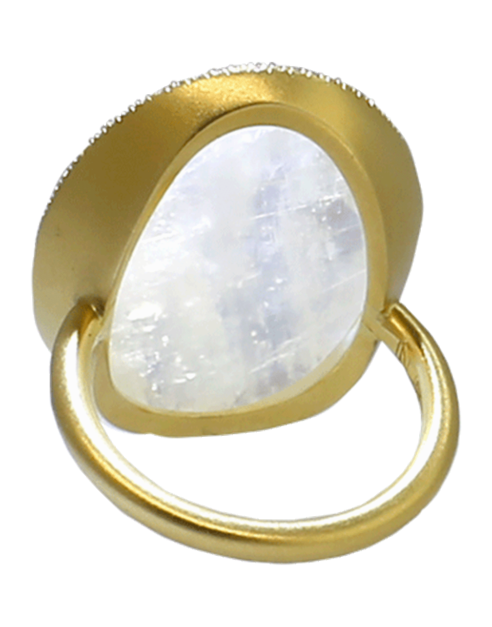 Rose Cut Rainbow Moonstone And Diamond Ring From Irene Neuwirth