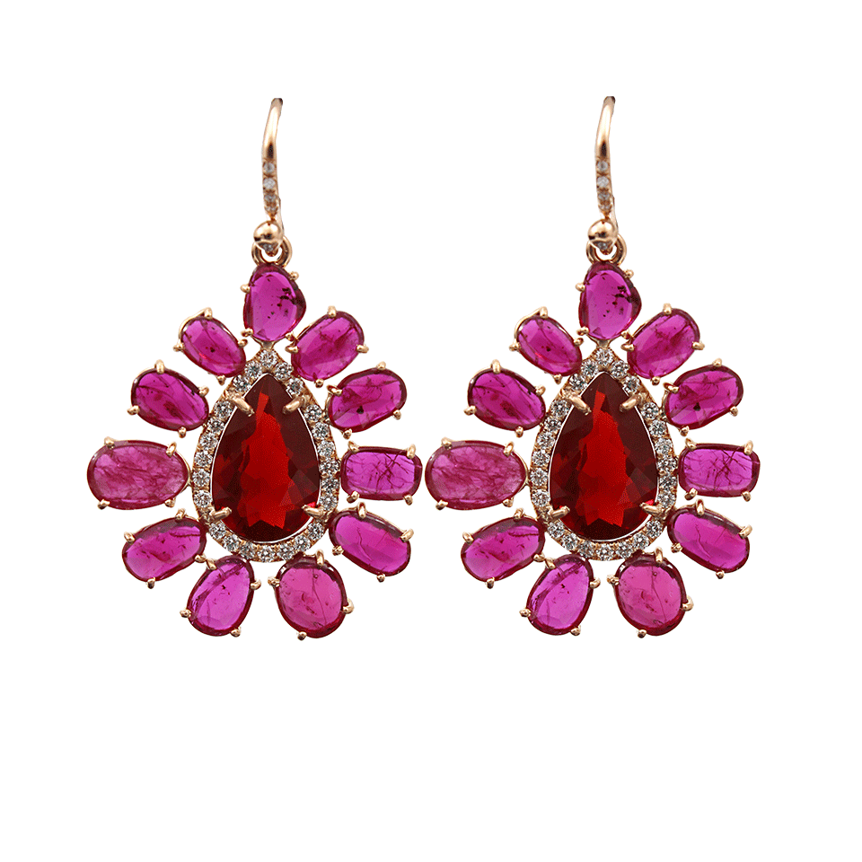 Fire Opal, Rose Cut Rubies, And Diamond Pave Earrings From Irene Neuwirth