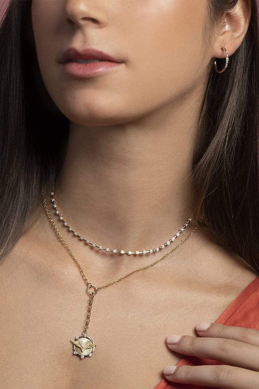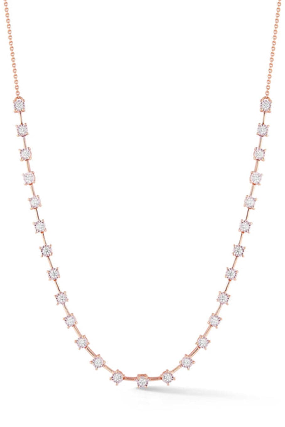 Dana Rebecca ava bea internval diamond tennis necklace. Meet the necklace your jewelry box will almost never see because you'll hardly ever be without it. Just under a half-carat of white round diamonds sparkle in 14k gold intervals. This fresh take on the classic diamond tennis necklace will take you from every outfit and occasion to the next seamlessly. Each diamond station features a ring of faceted 14k gold to enhance the shape of the diamond and add extra sparkle.