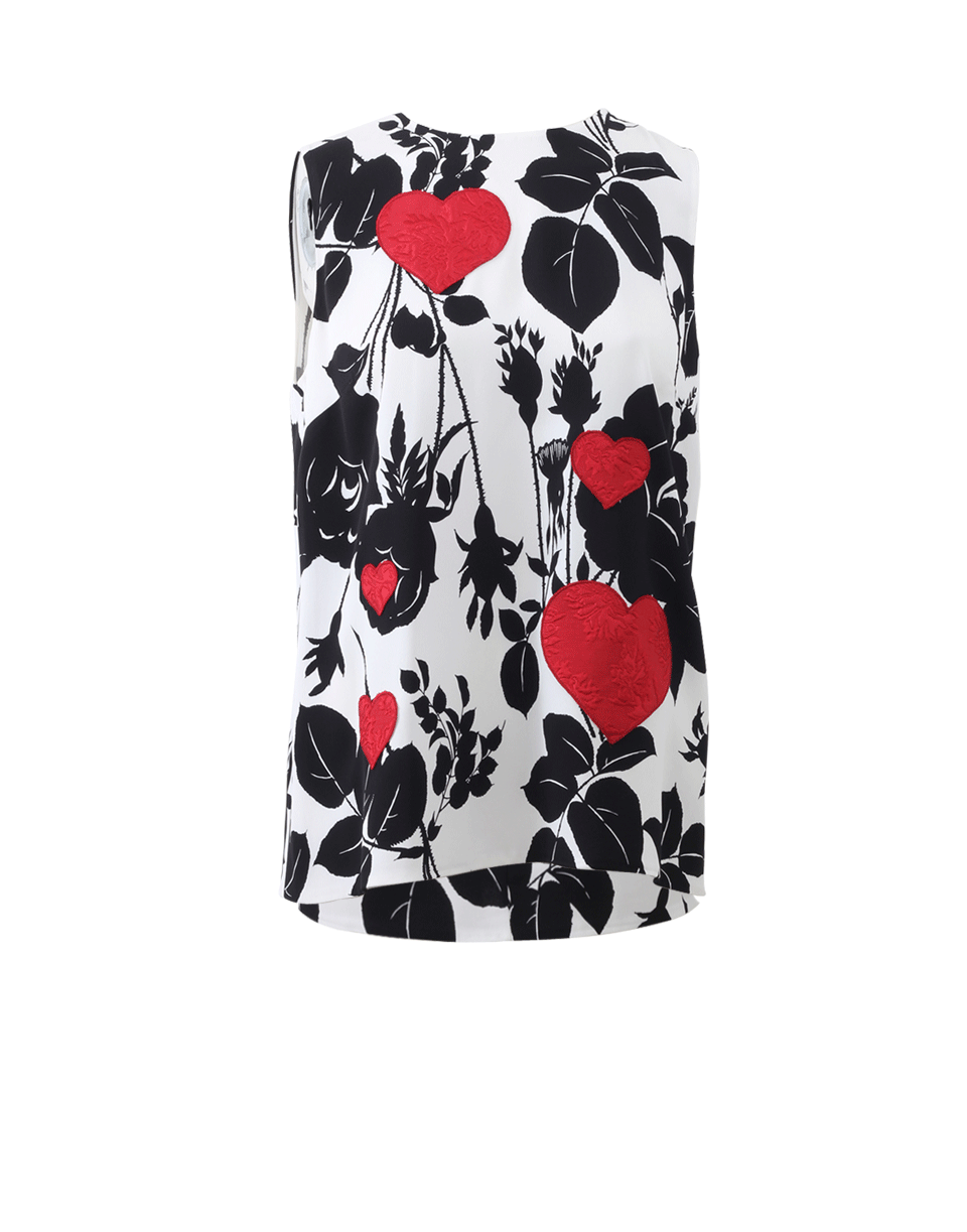 All-Over Rose Print With Embroidered Hearts, Side Vents