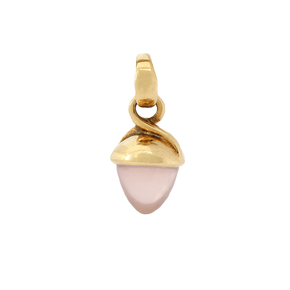 Acorn shaped pendant in rose quartz, set in yellow gold.