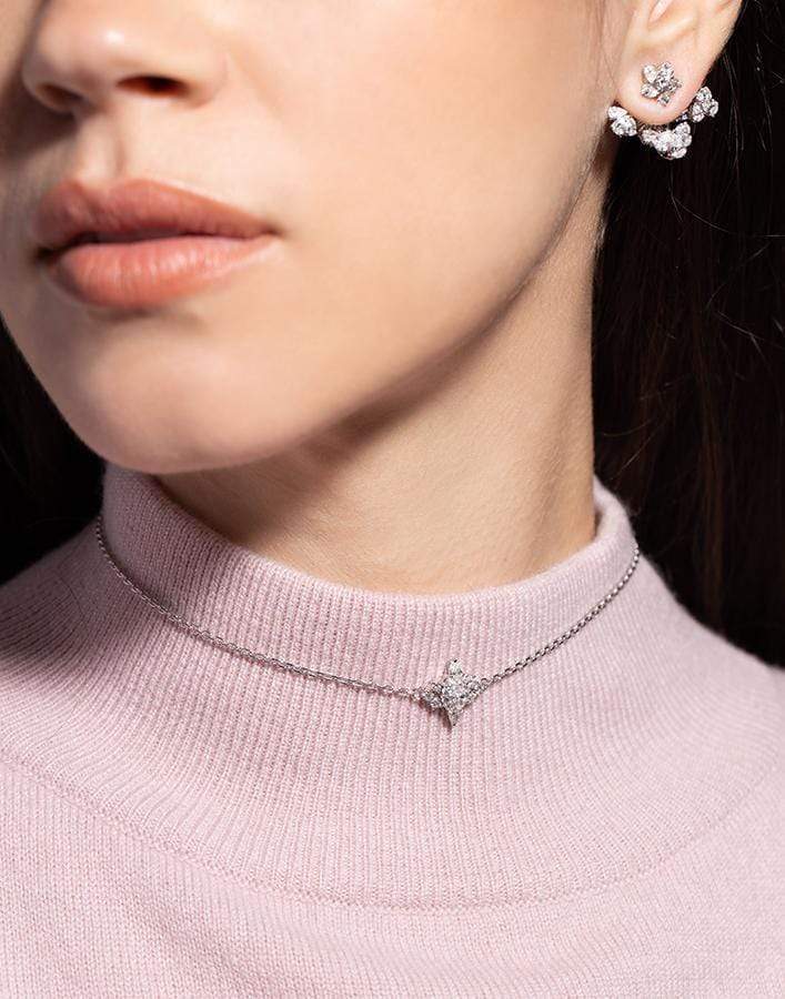 Yeprem round and pear diamond choker necklace set in white gold.