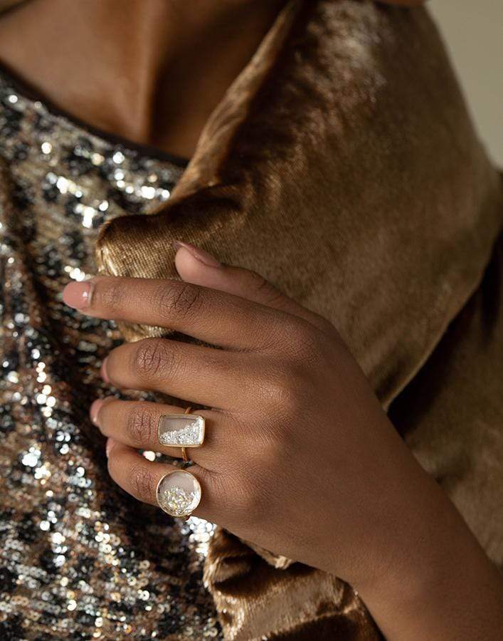 Moritz Glik round yellow diamond shaker ringe with white sapphire crystal from the Core Collection.