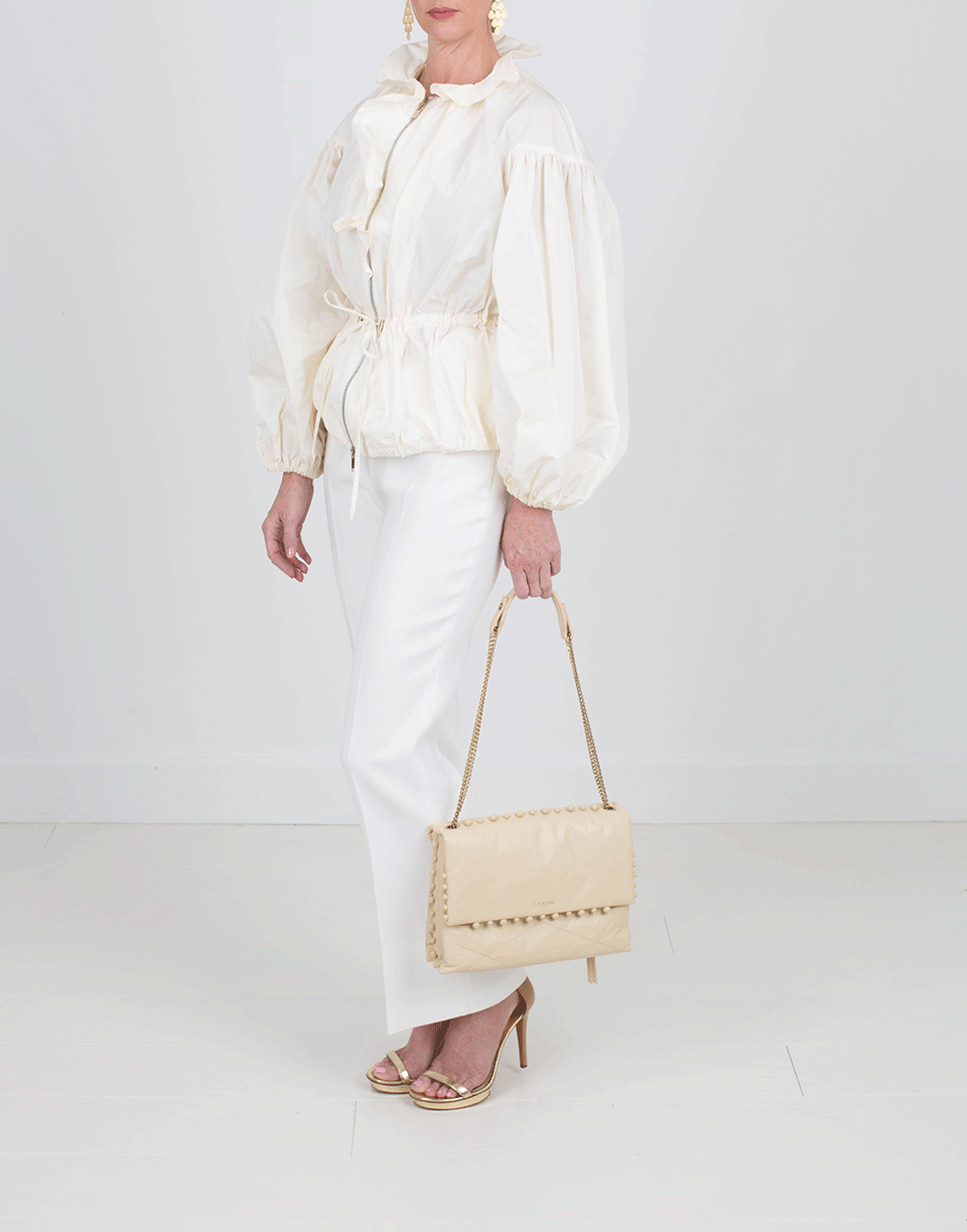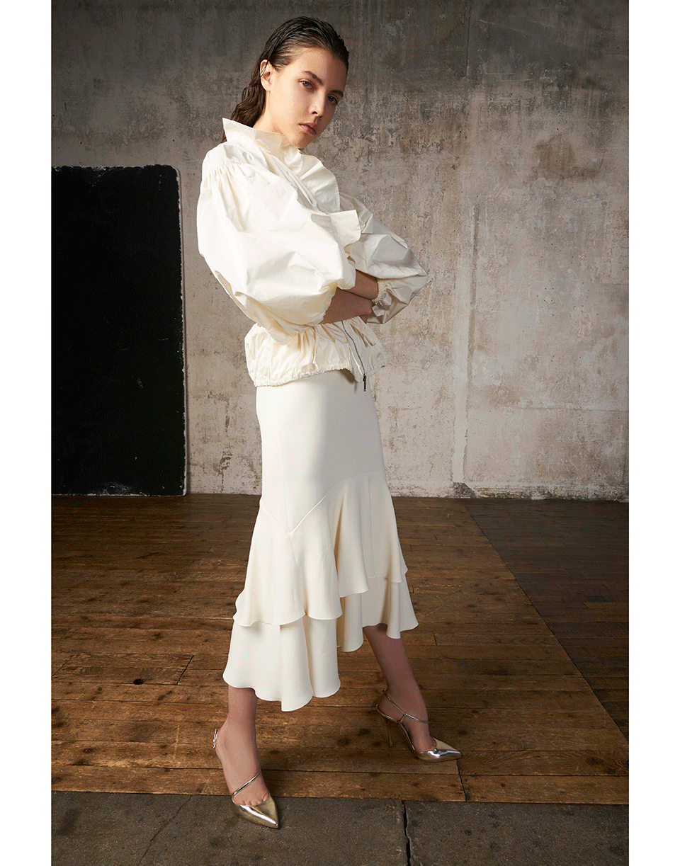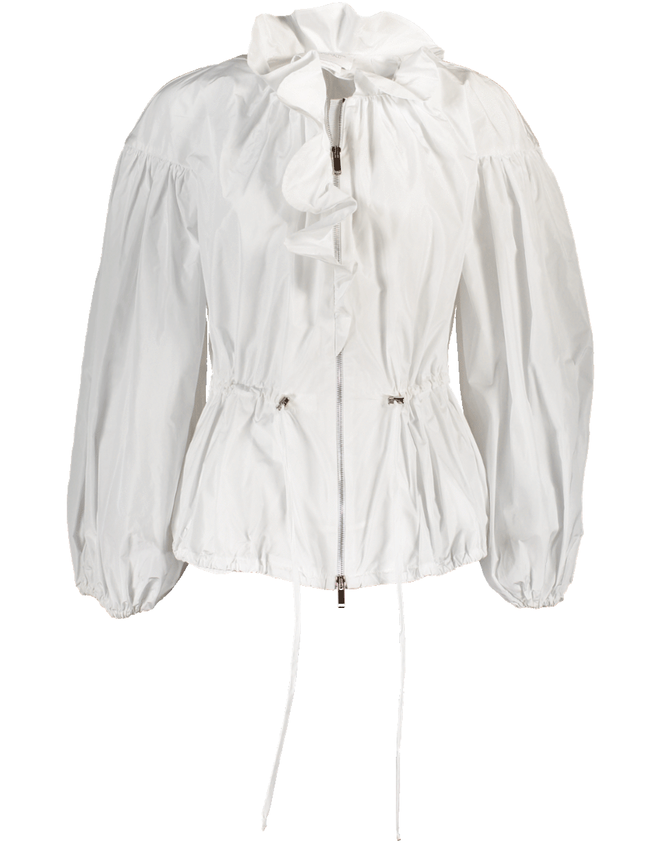 High Ruffle Collar With Front Zip Closure And Long Sleeves