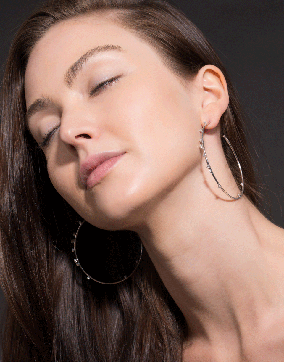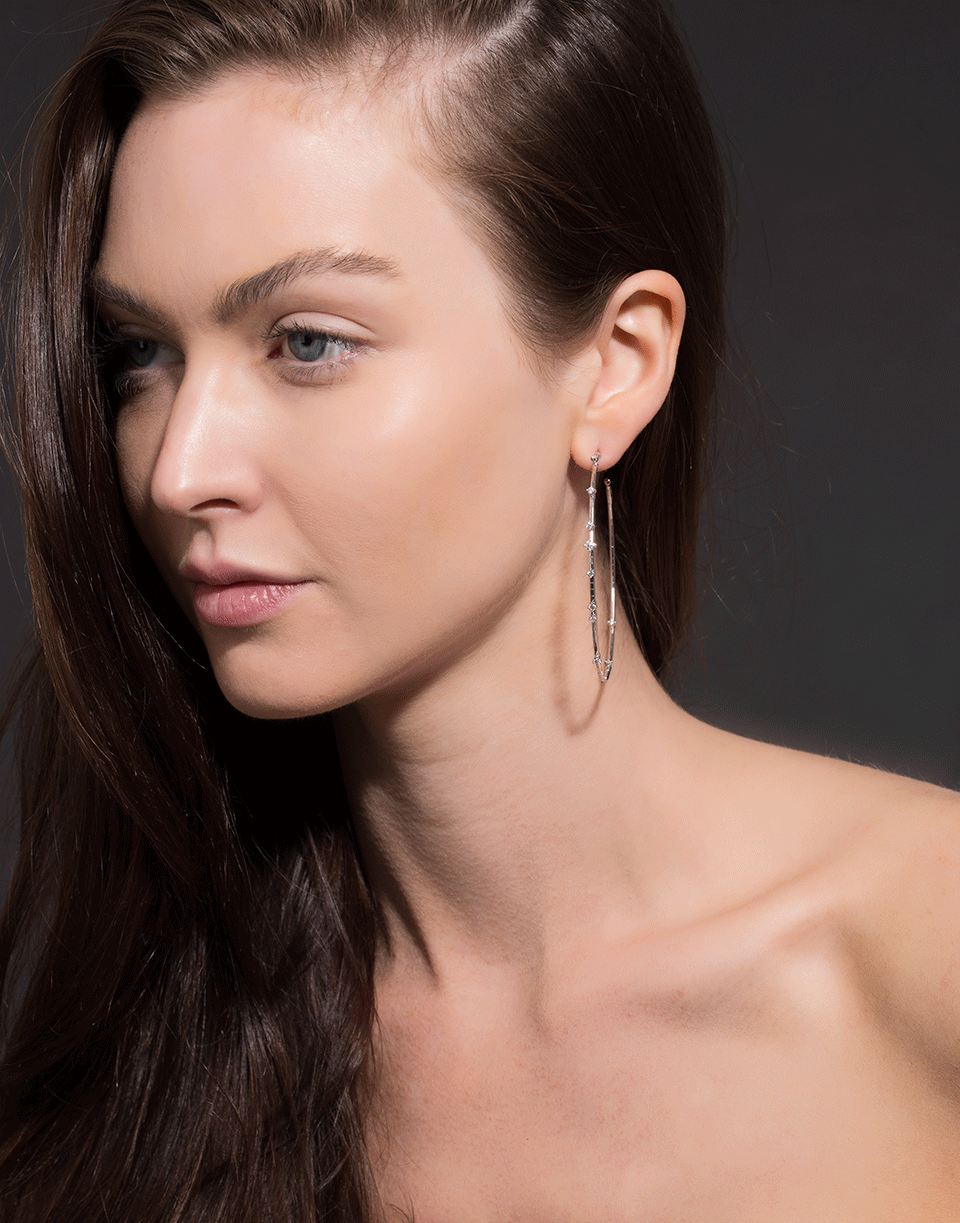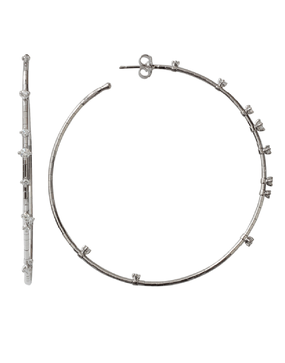 Mattia Cielo Rugiada Collection hoop earrings with diamonds set in 18k white gold and titanium.