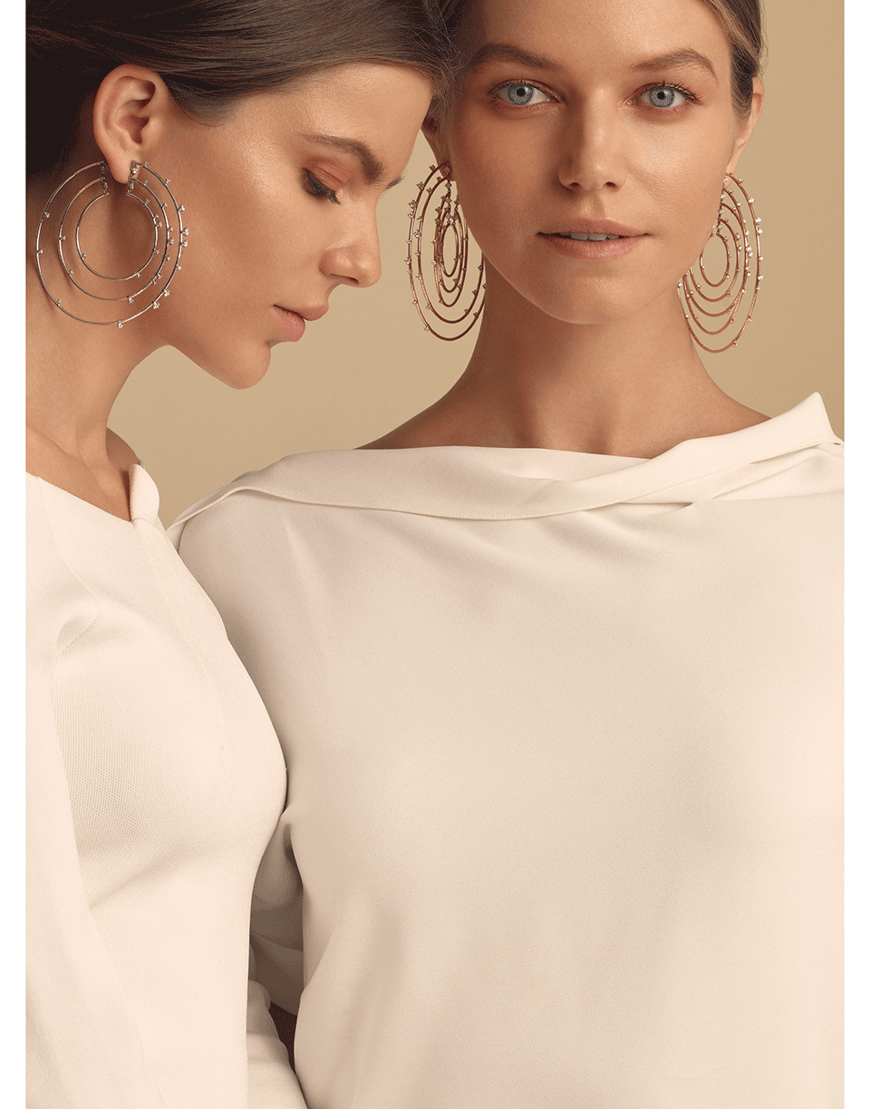 Mattia Cielo triple diamond echo rugiada hoops for pierced ears from the Rugiada Collection.
