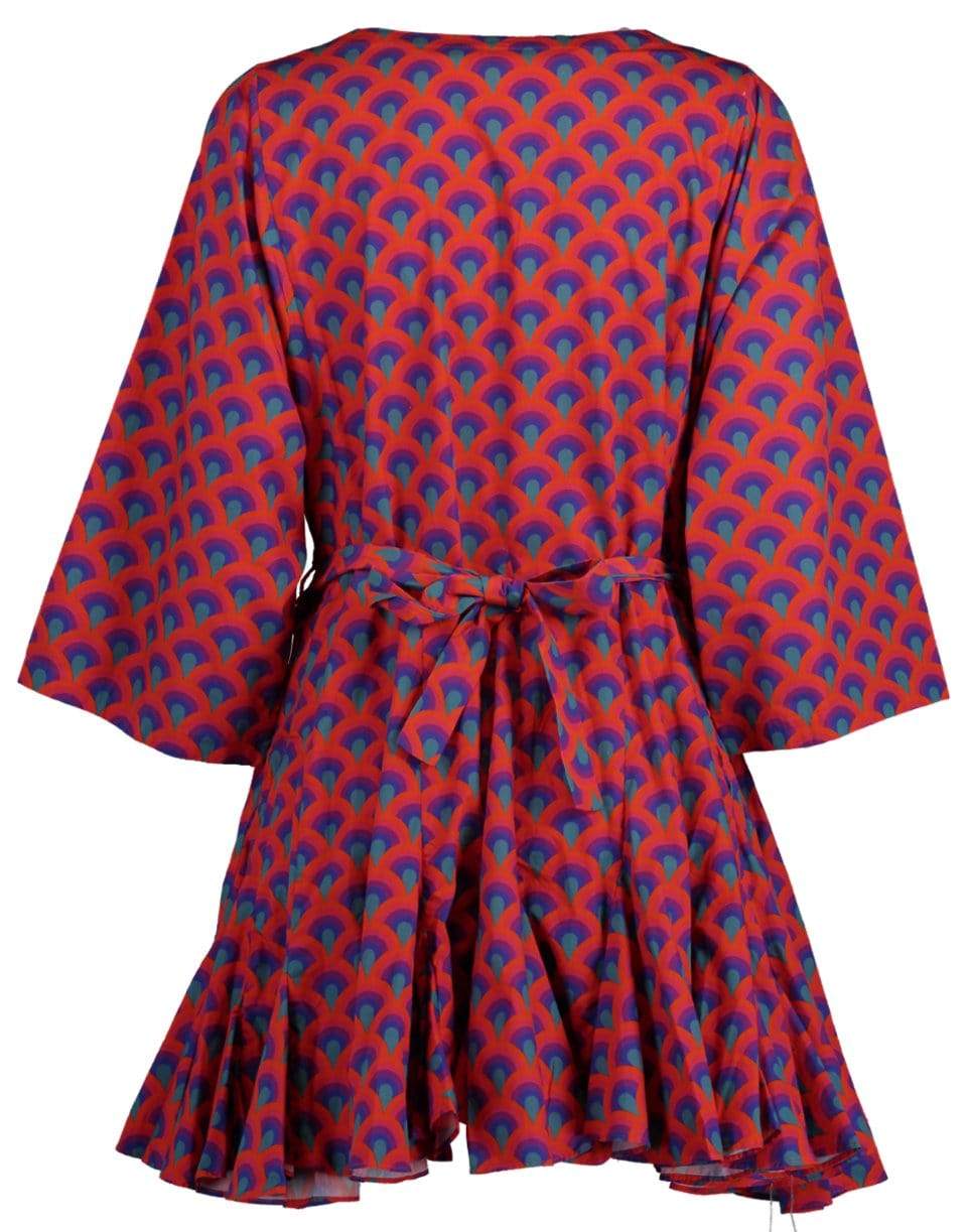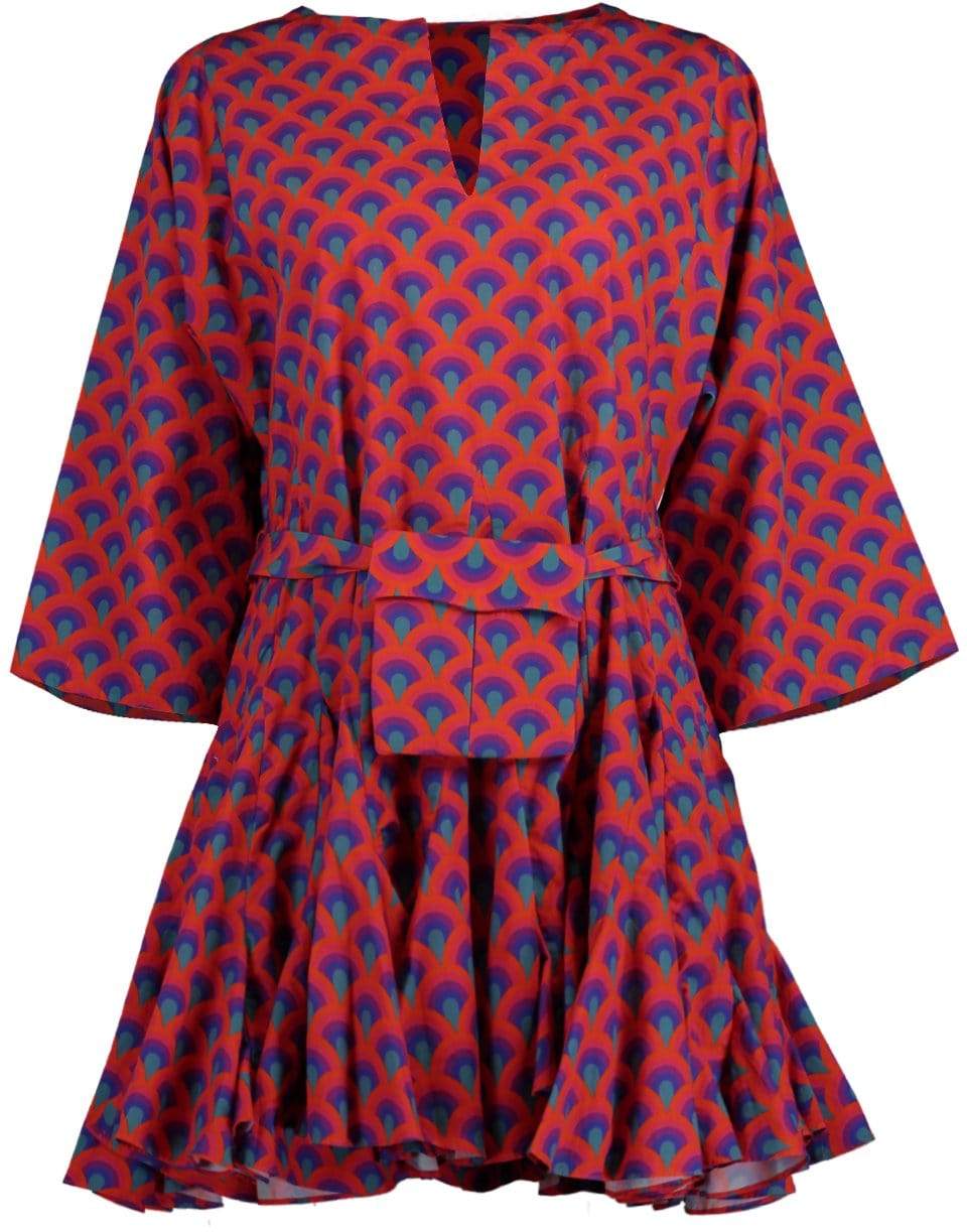 Rhode Resort cotton Ryan Dress with a split neckline, wide kimono sleeves, slipover design, optional waist-cinching belt bag, and a short length.