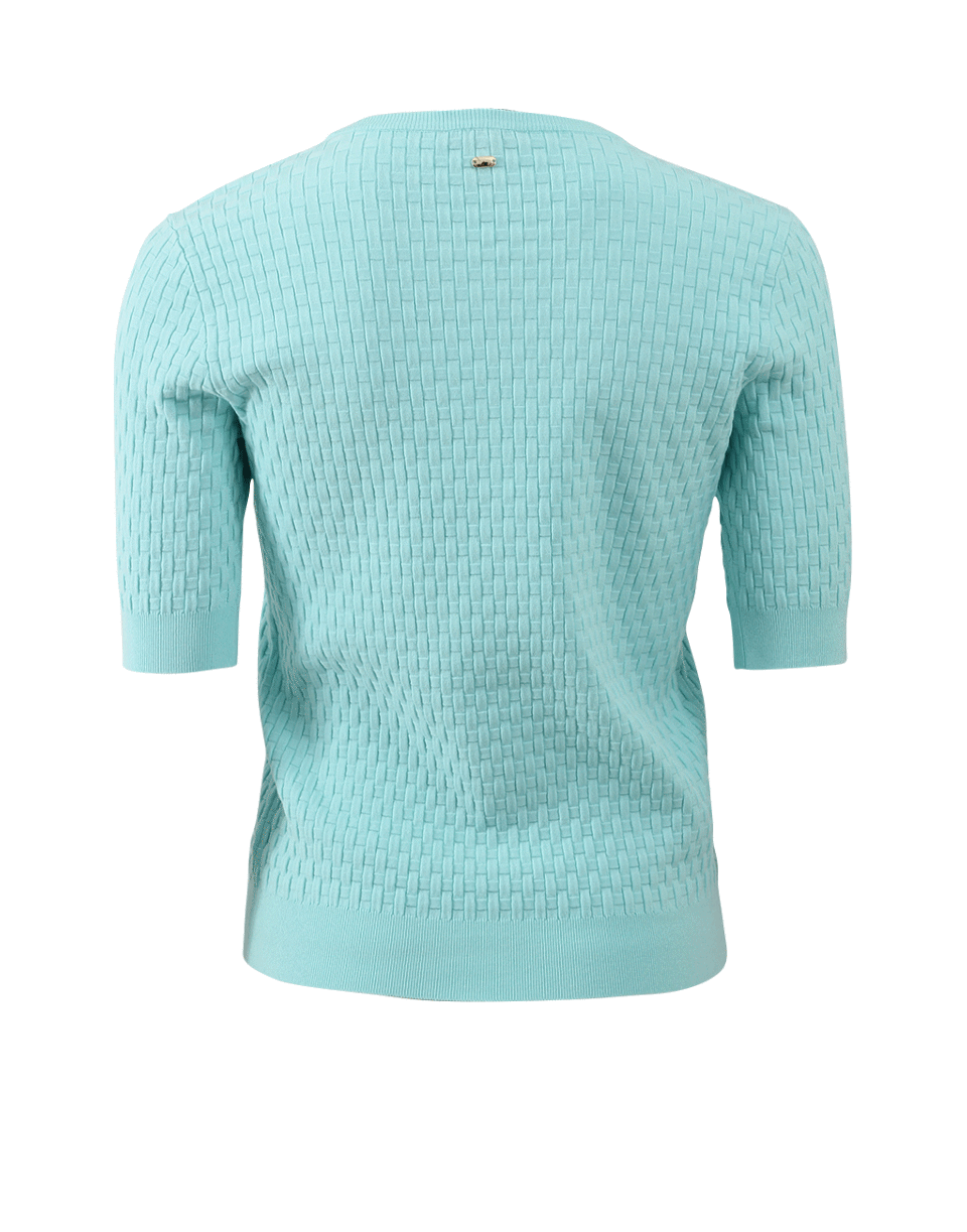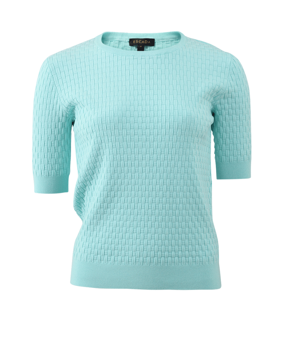 Jewel Neckline With Elbow-Length Sleeves, Ribbing At Neck, Cuffs, And Hem