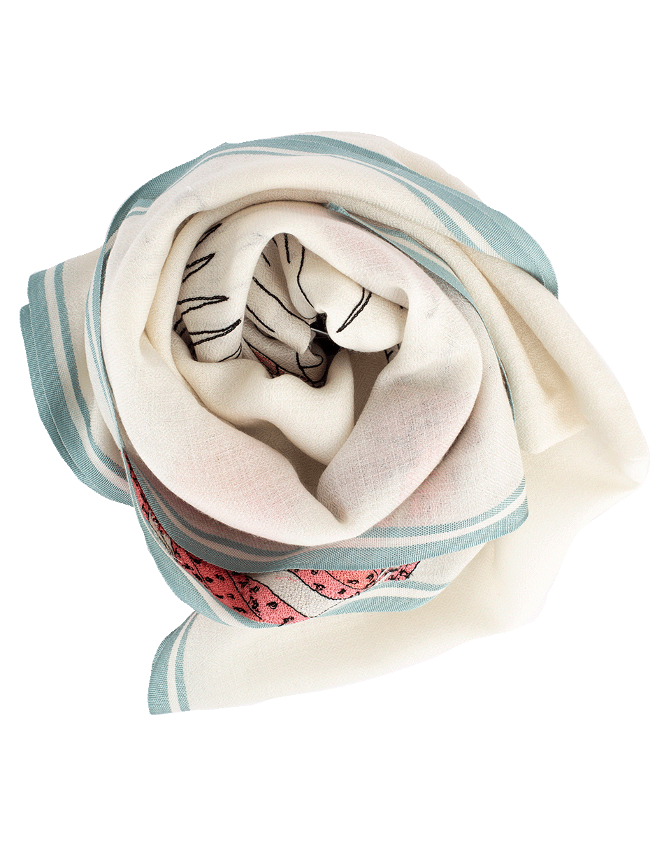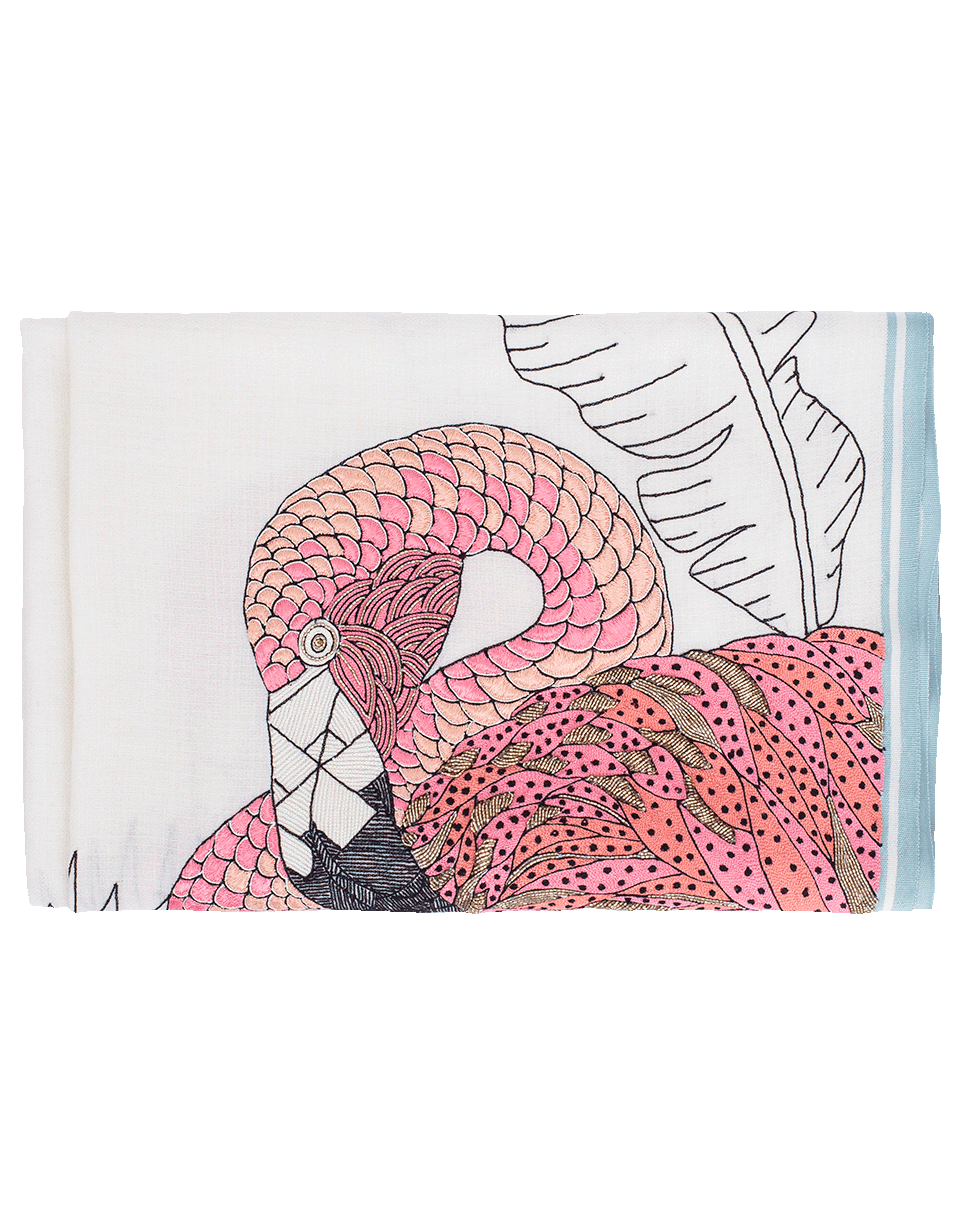 This handcrafted scarf from K. Janavi features an bold flamingo design with handsewn embellishment.