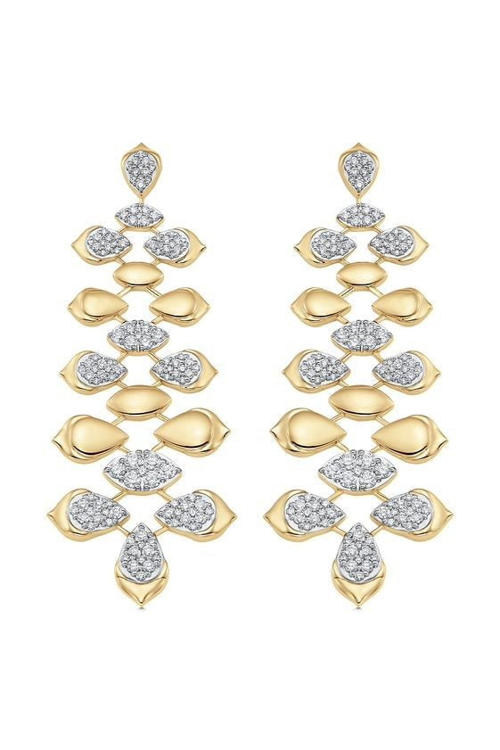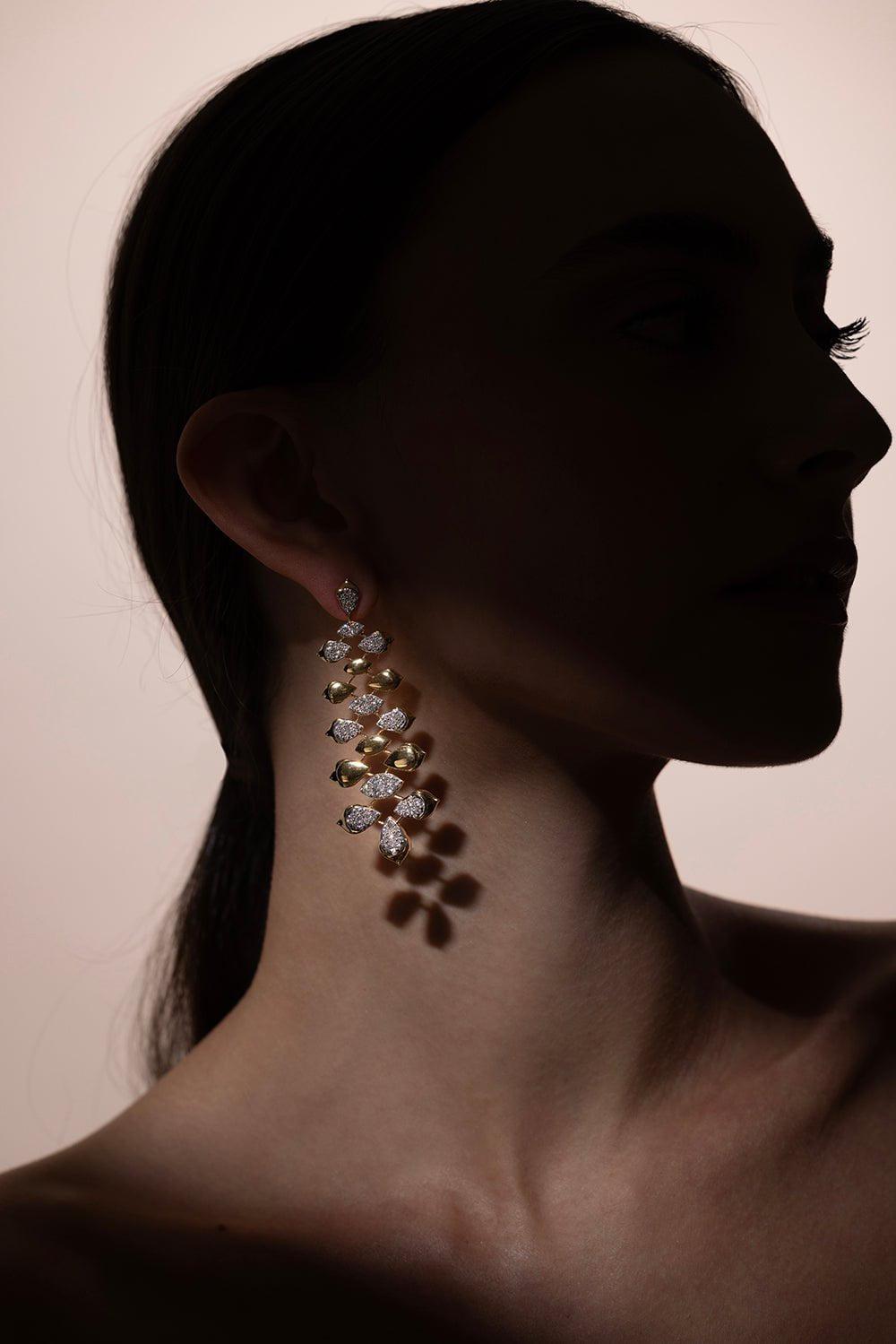 Sara Weinstock lierre marquise drop earrings in yellow gold.