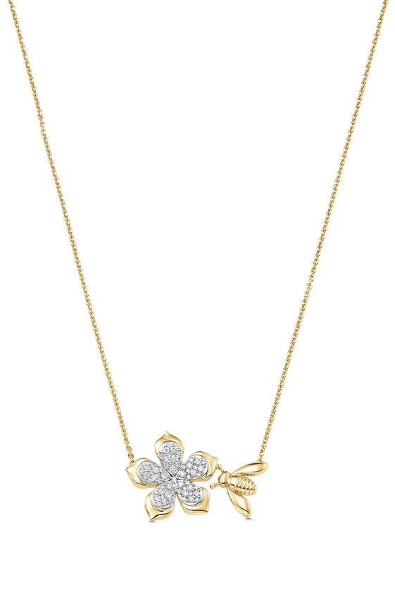 Sara Weinstock queen bee flower necklace in yellow gold.