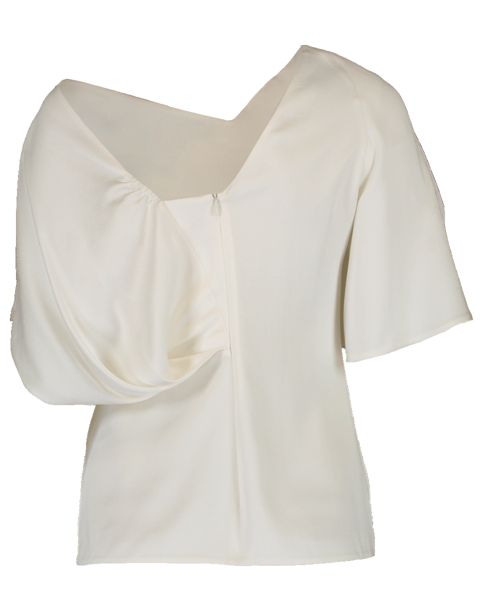 Asymmetrical Neckline With Back Zip Closure And Short Sleeves