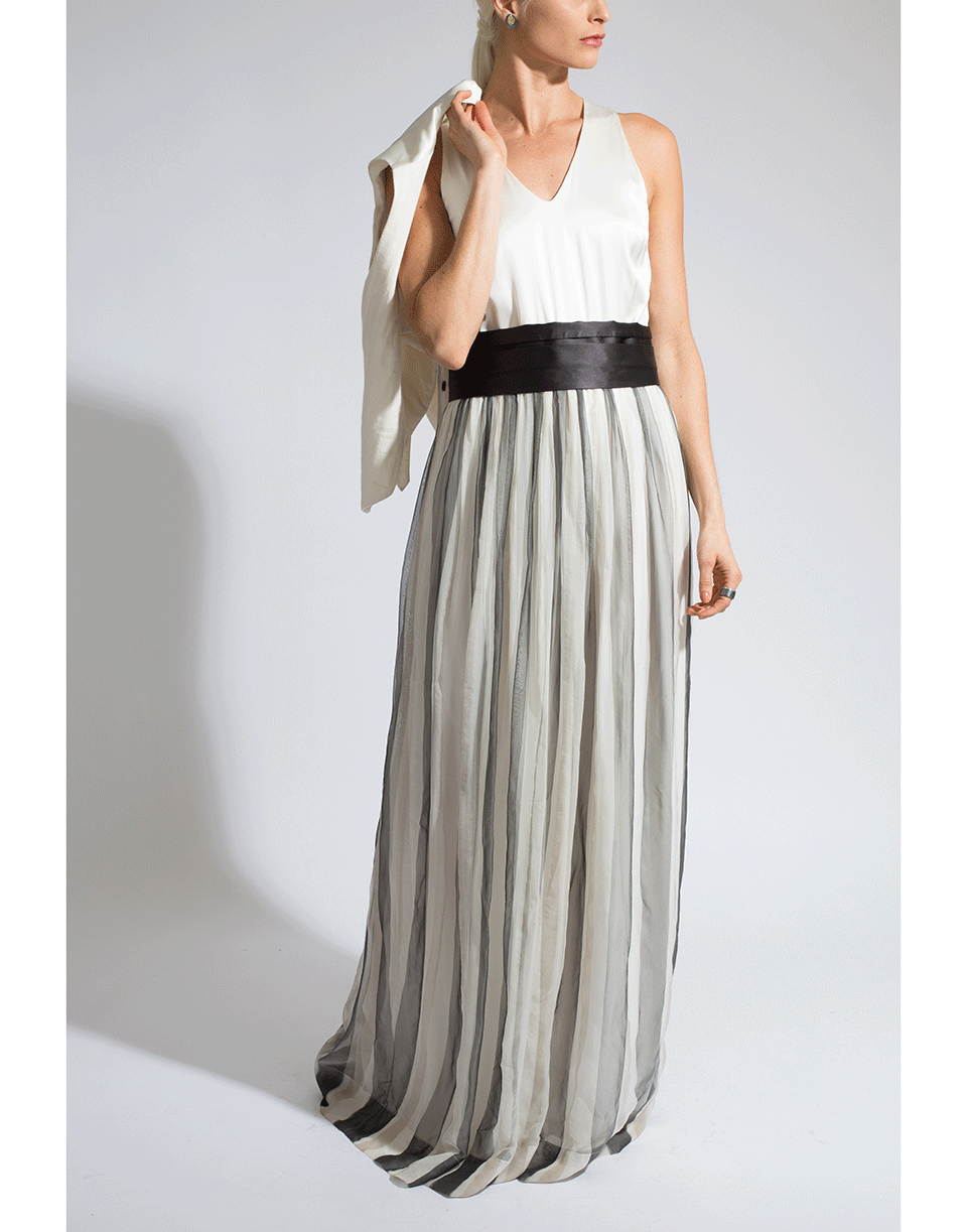 Slim Fitting Bodice With Full Skirt And Ankle Length Cut