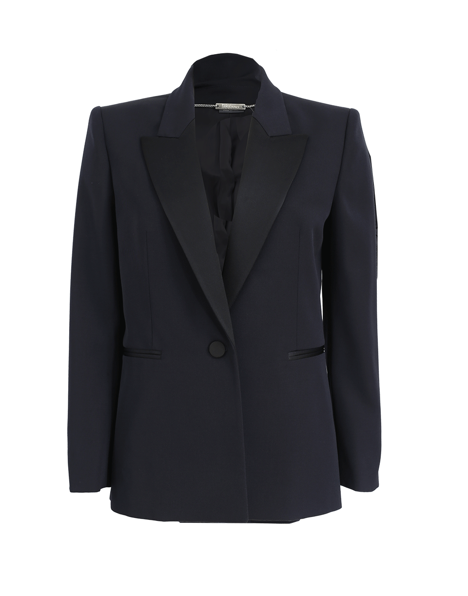 Peak Lapel Collar With One Front Button Closure And Long Sleeves