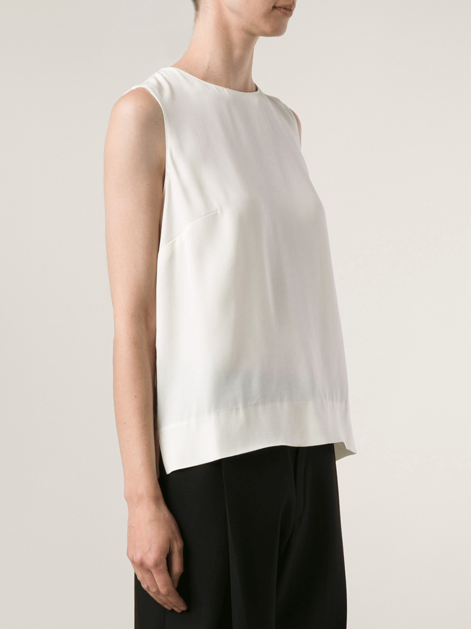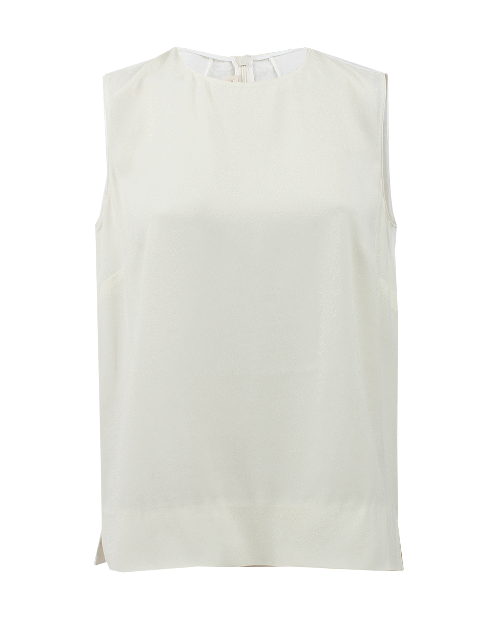 Satin Front With Linen Back, Scoop Neckline, And Small Side Vents