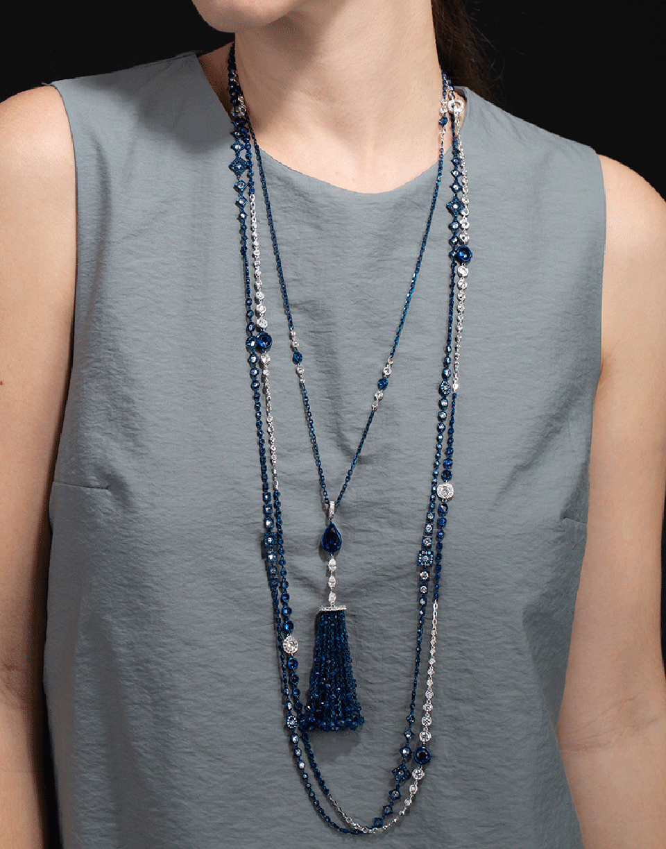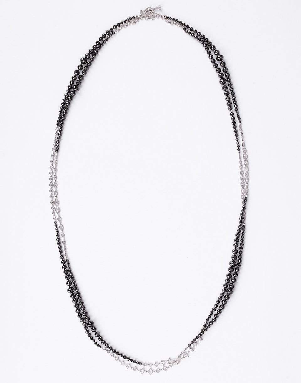 Mariani Sautoir collection black diamond necklace with multi-shape white diamonds.