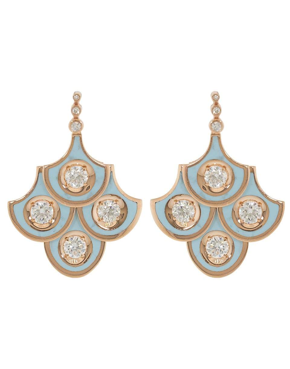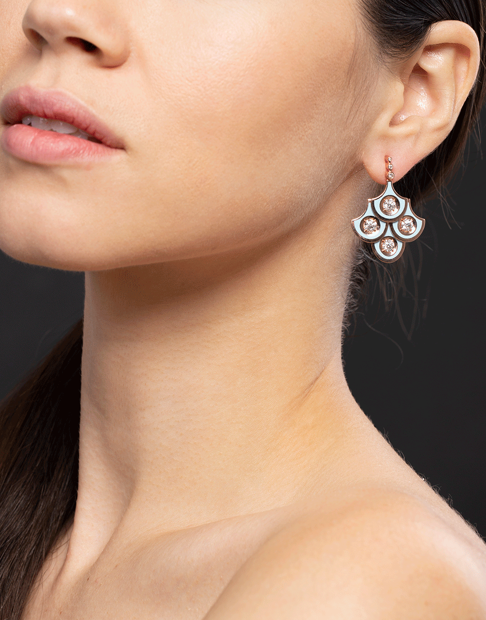 Selim Mouzannar scalloped diamond earrings with light blue enamel rendered in 18k rose gold. For pierced ears.