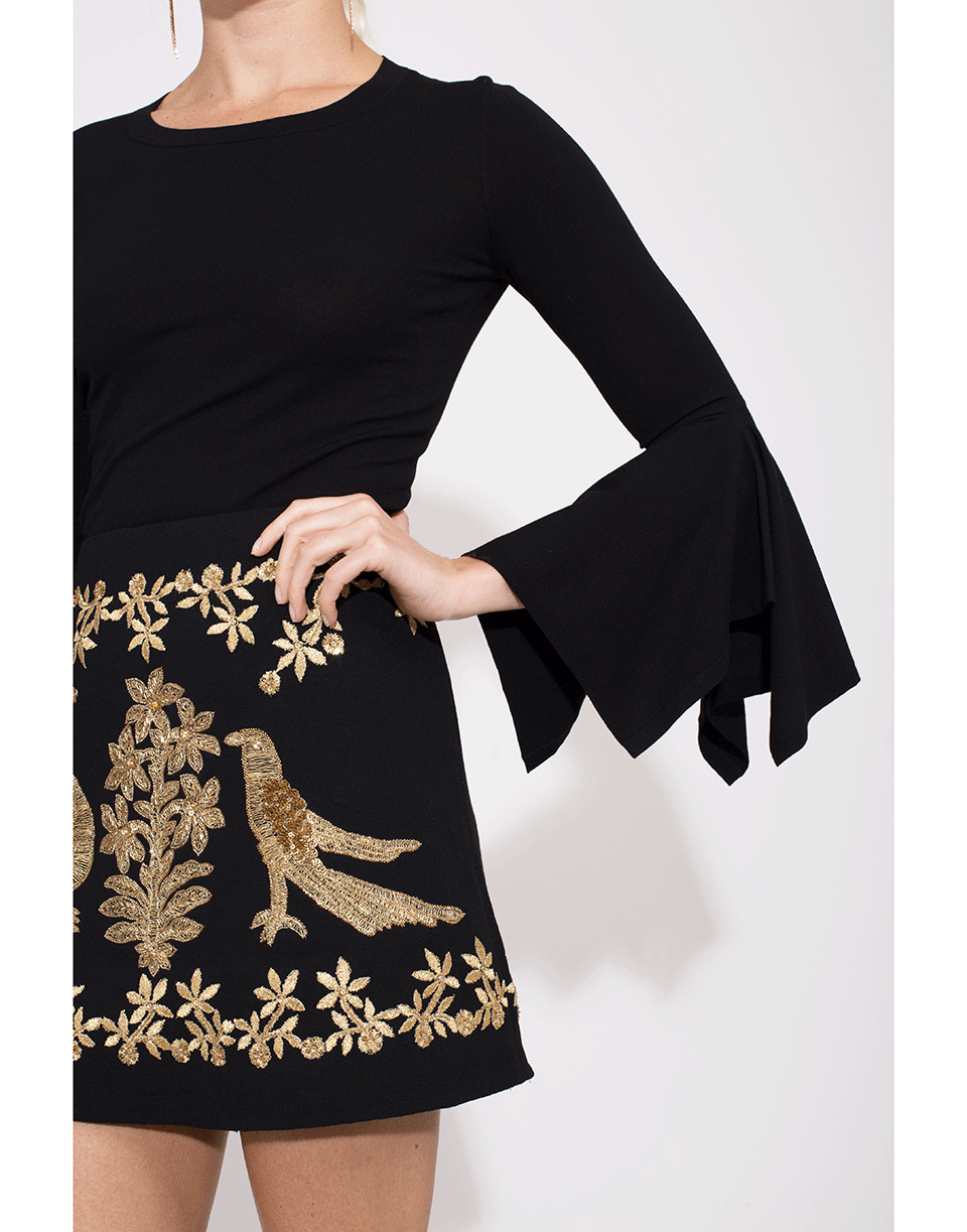 Scoopneck pullover by Michael Kors Collection. This stretch viscose top features long bell sleeves, a scoop neckline, slim fit and a straight hem.
