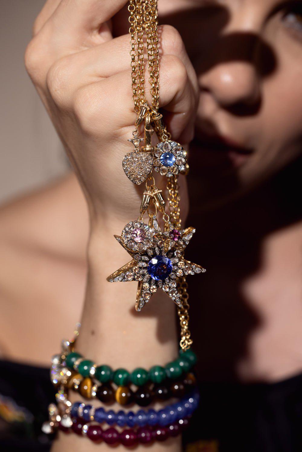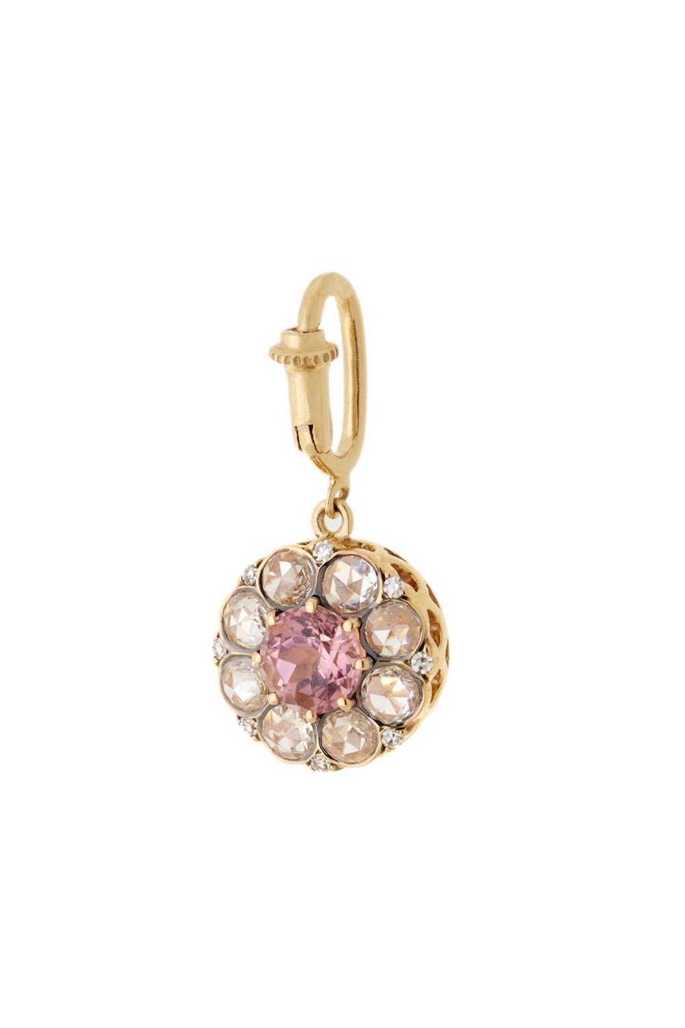Selim Mouzannar pink tourmaline flower charm in yellow gold.