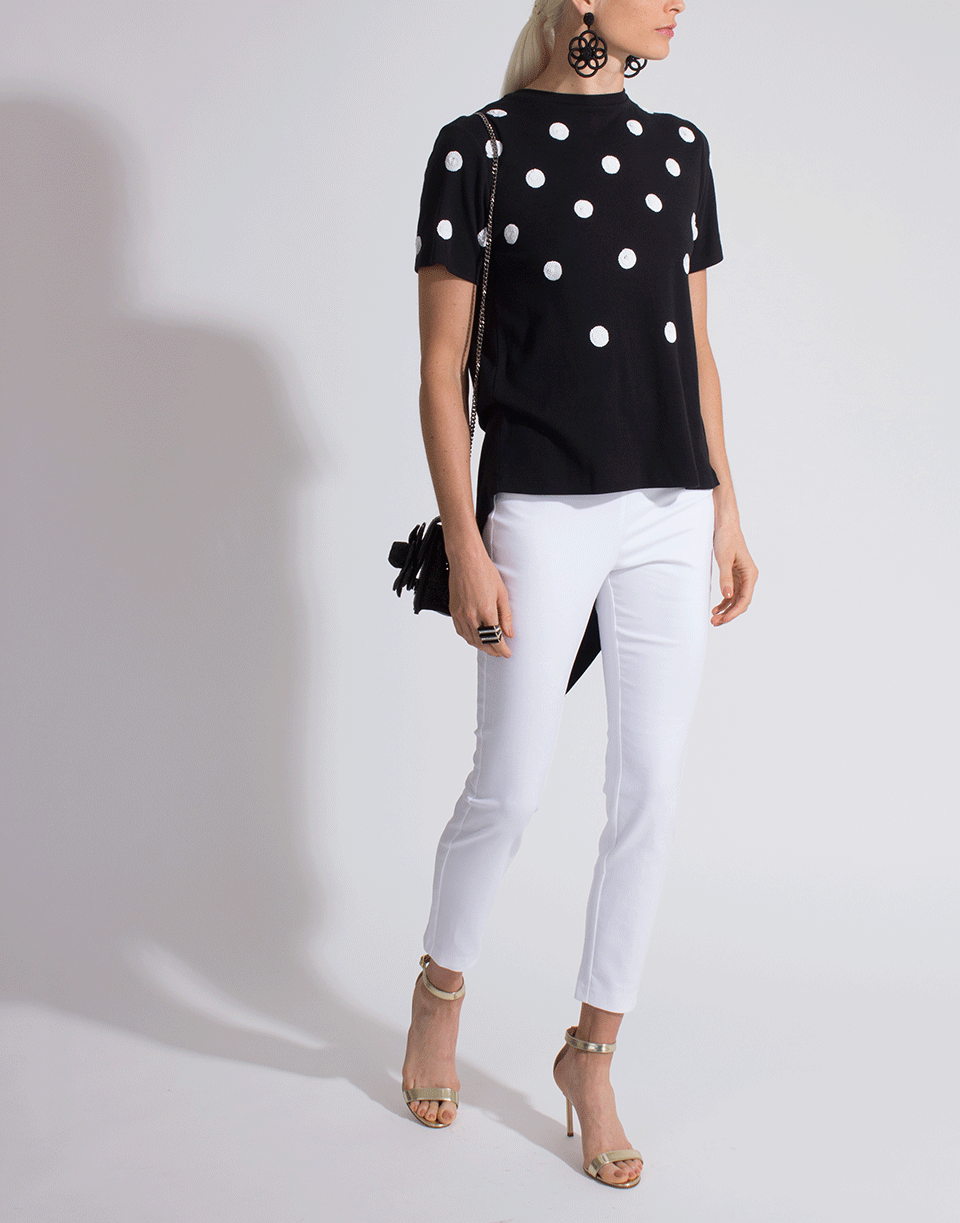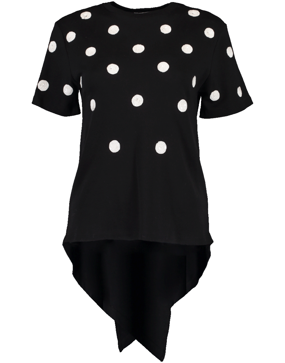 Crew Neckline And Short Sleeves With Sequined Polka Dots