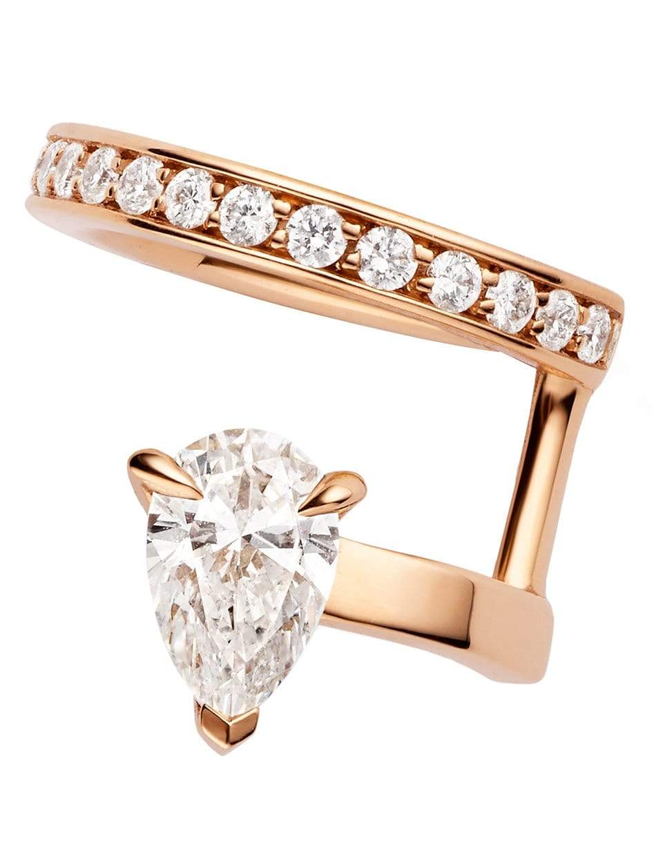 Repossi single Serti Sur Vide paved earcuff and a pear diamondin Pink Gold. For right ear.