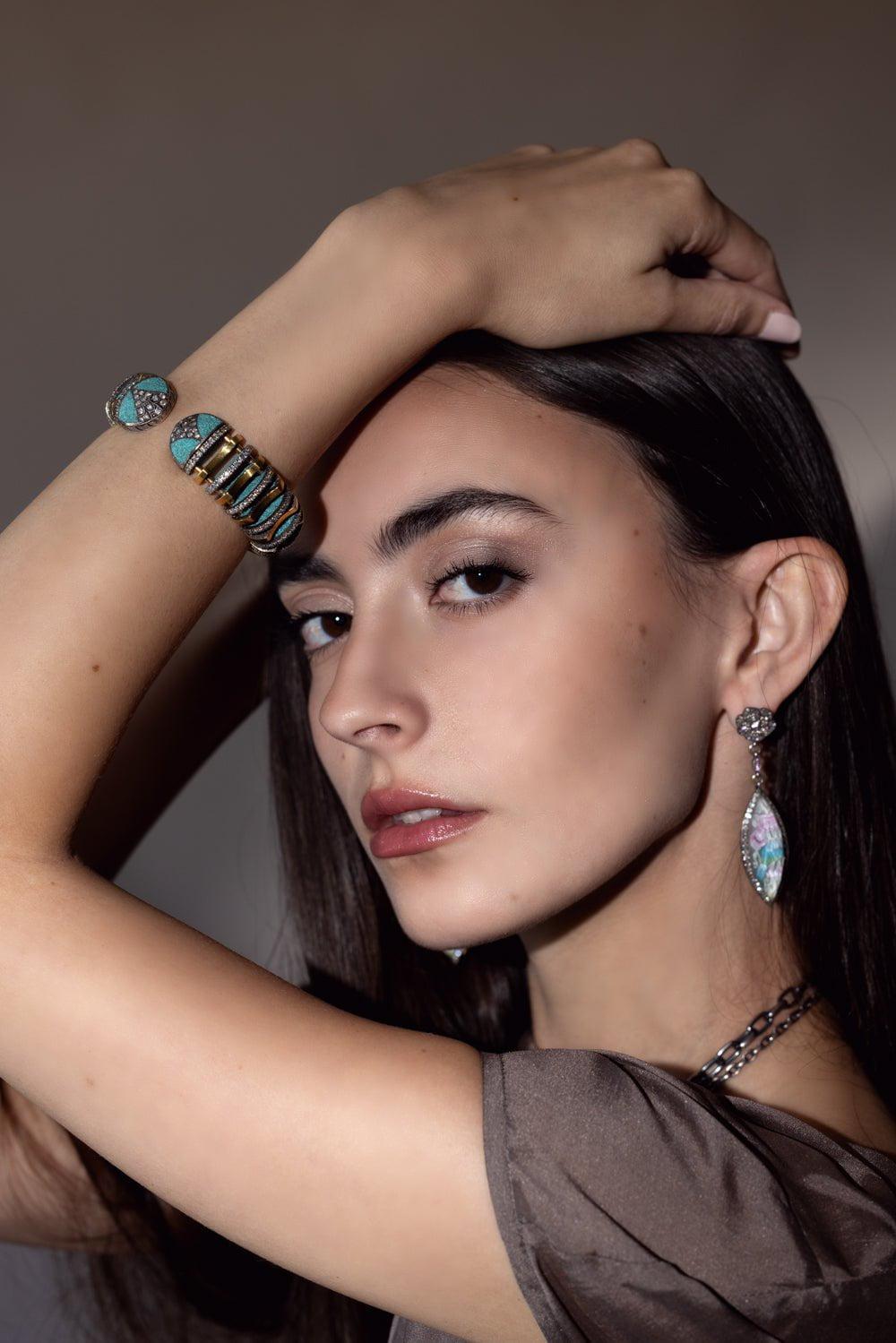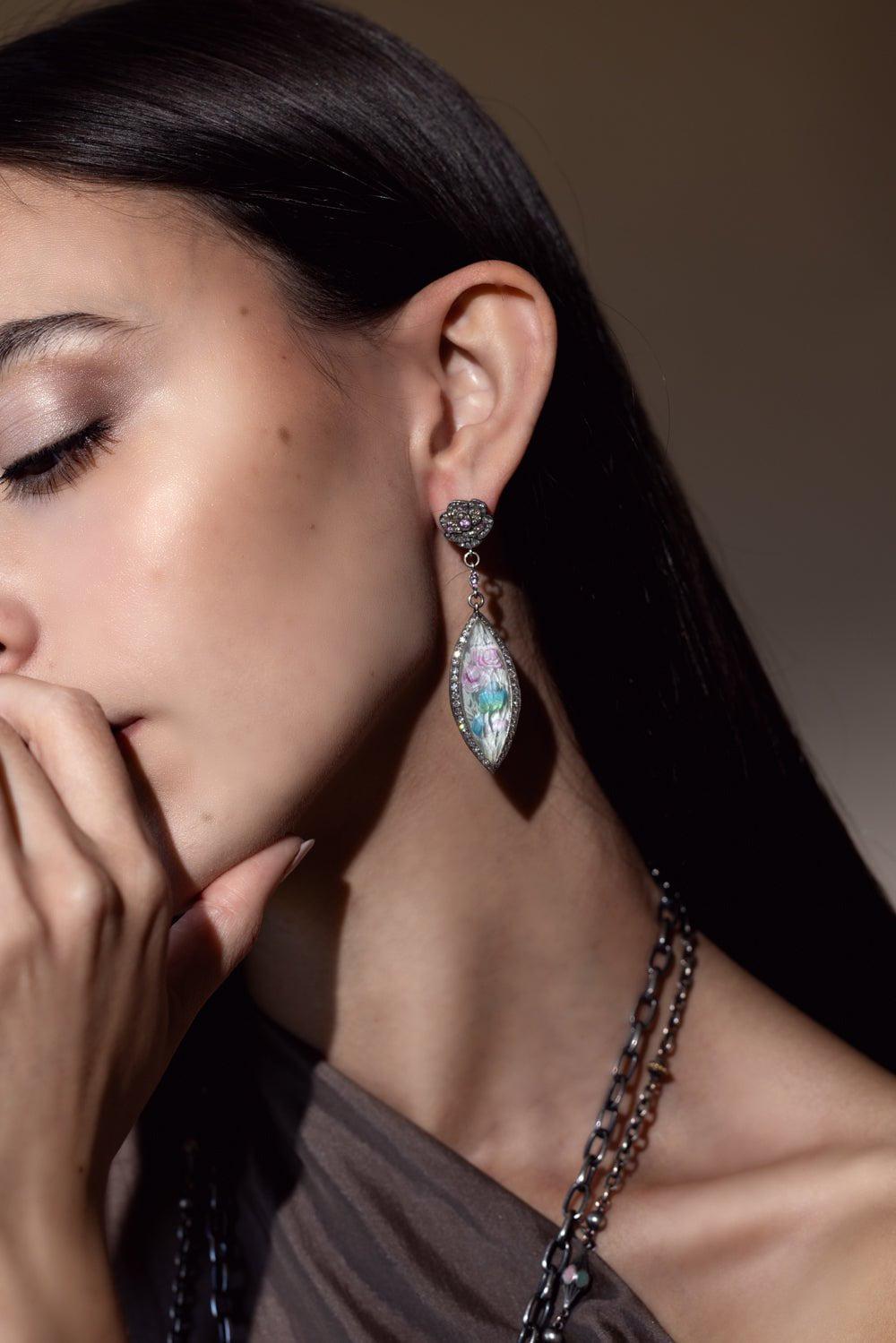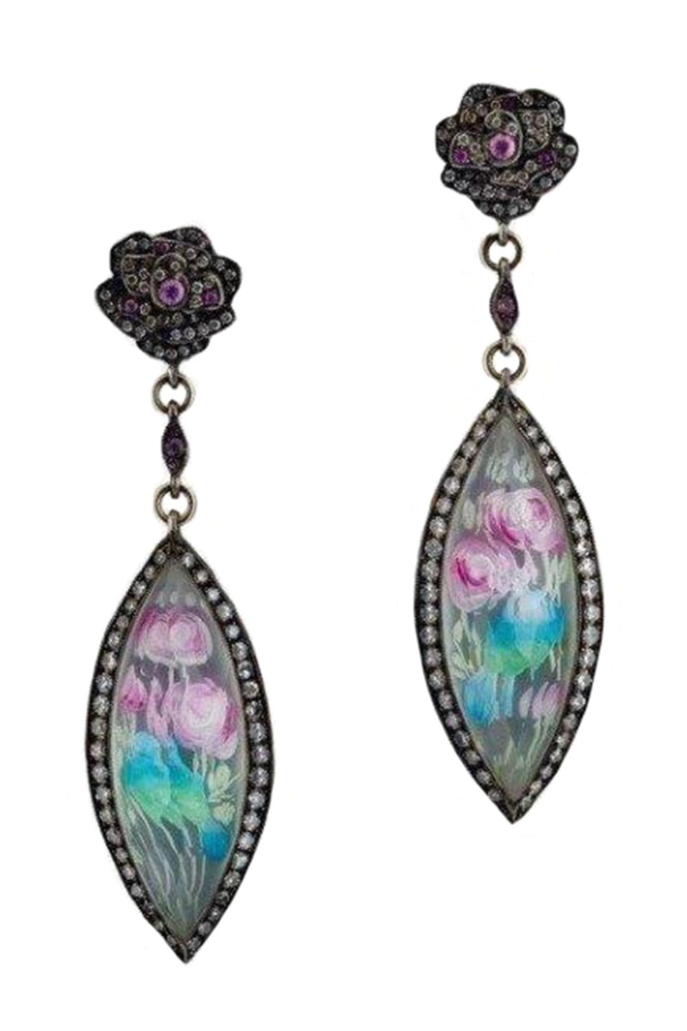 Sevan Bicakci rock quartz floral drop earrings in yellow gold.