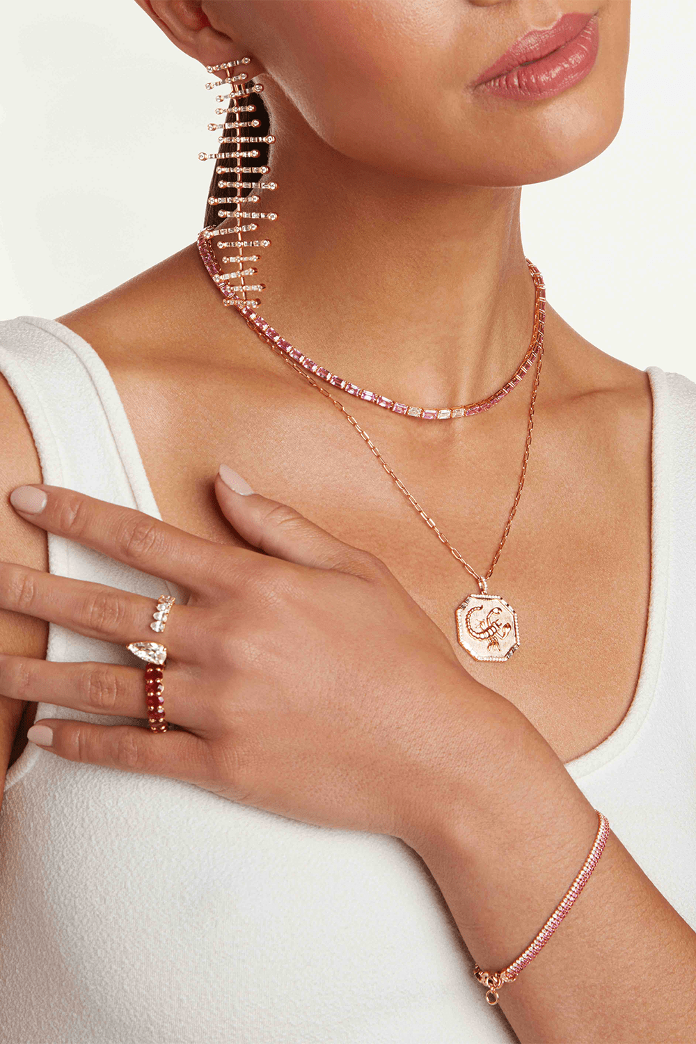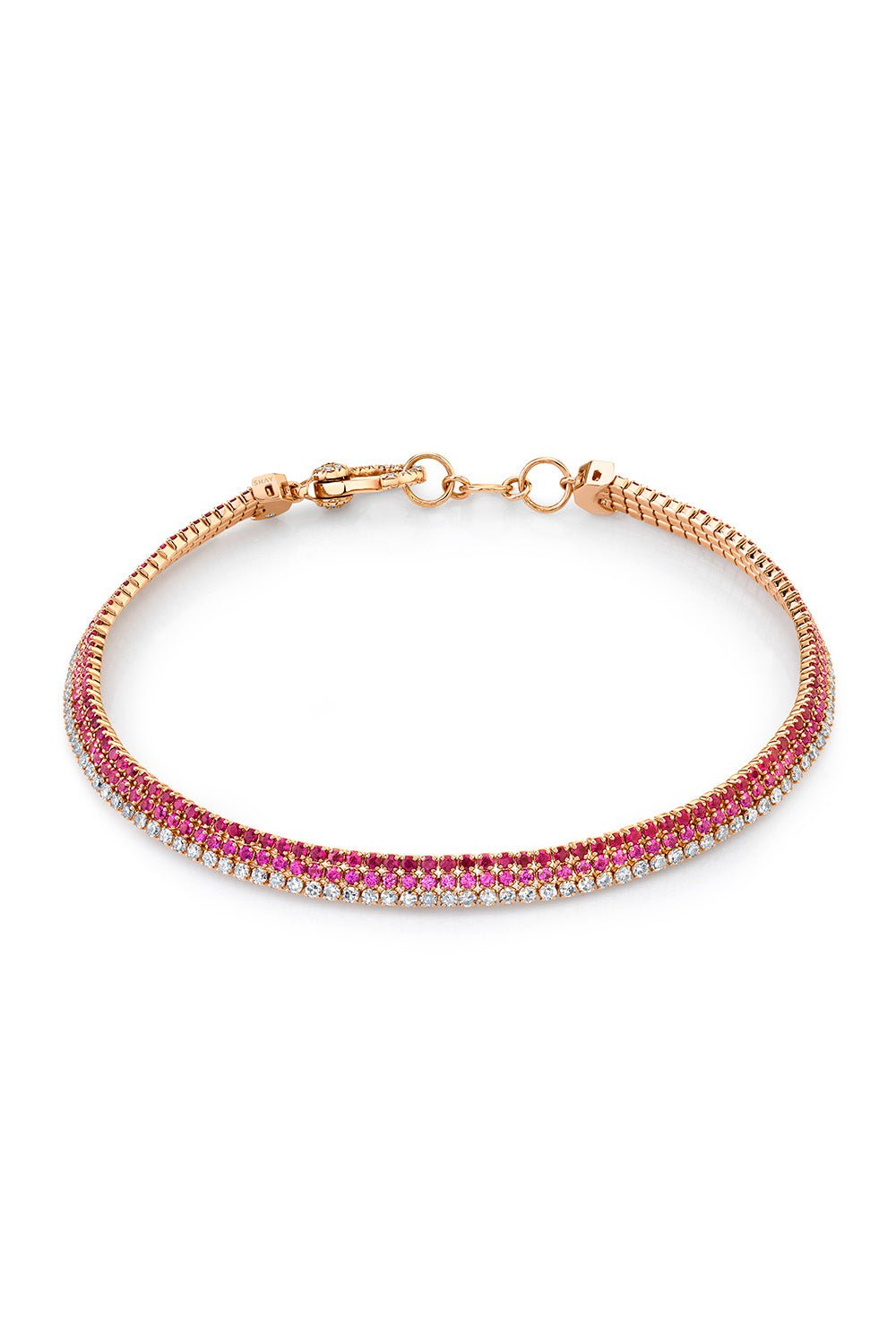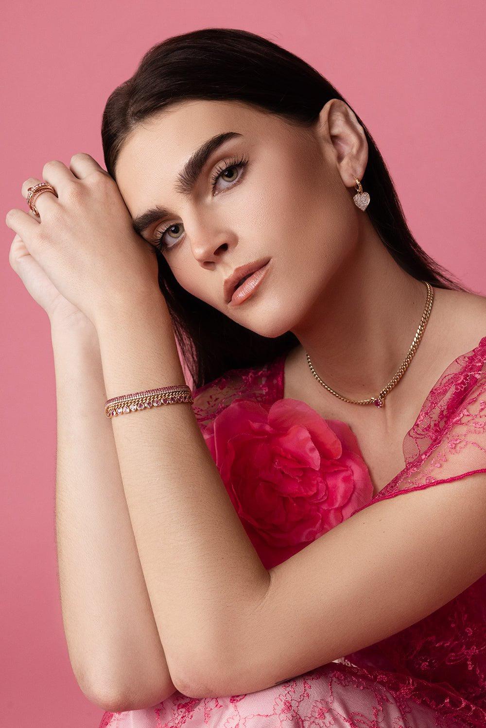 Shay trriple stacked threads bracelet in rose gold.