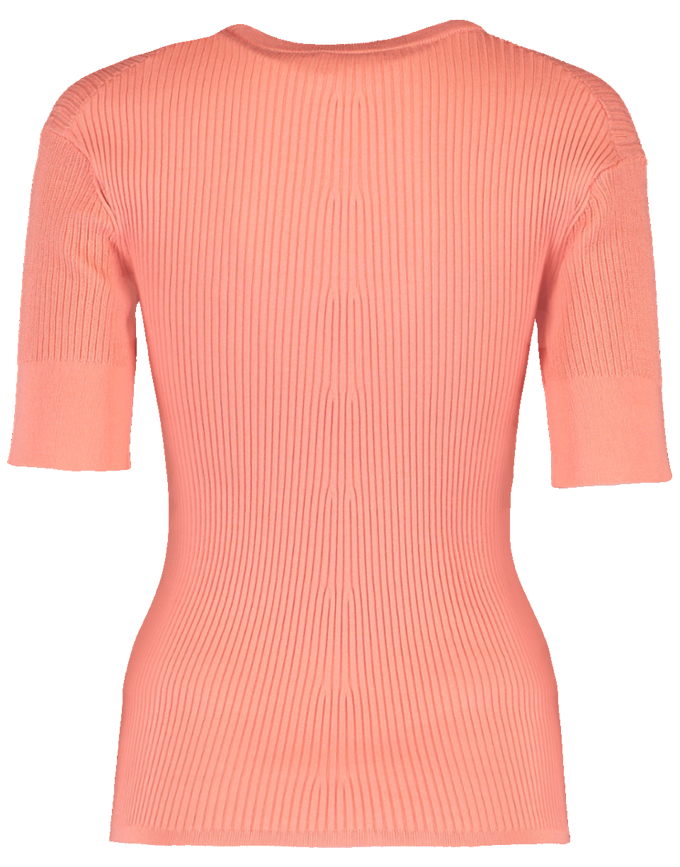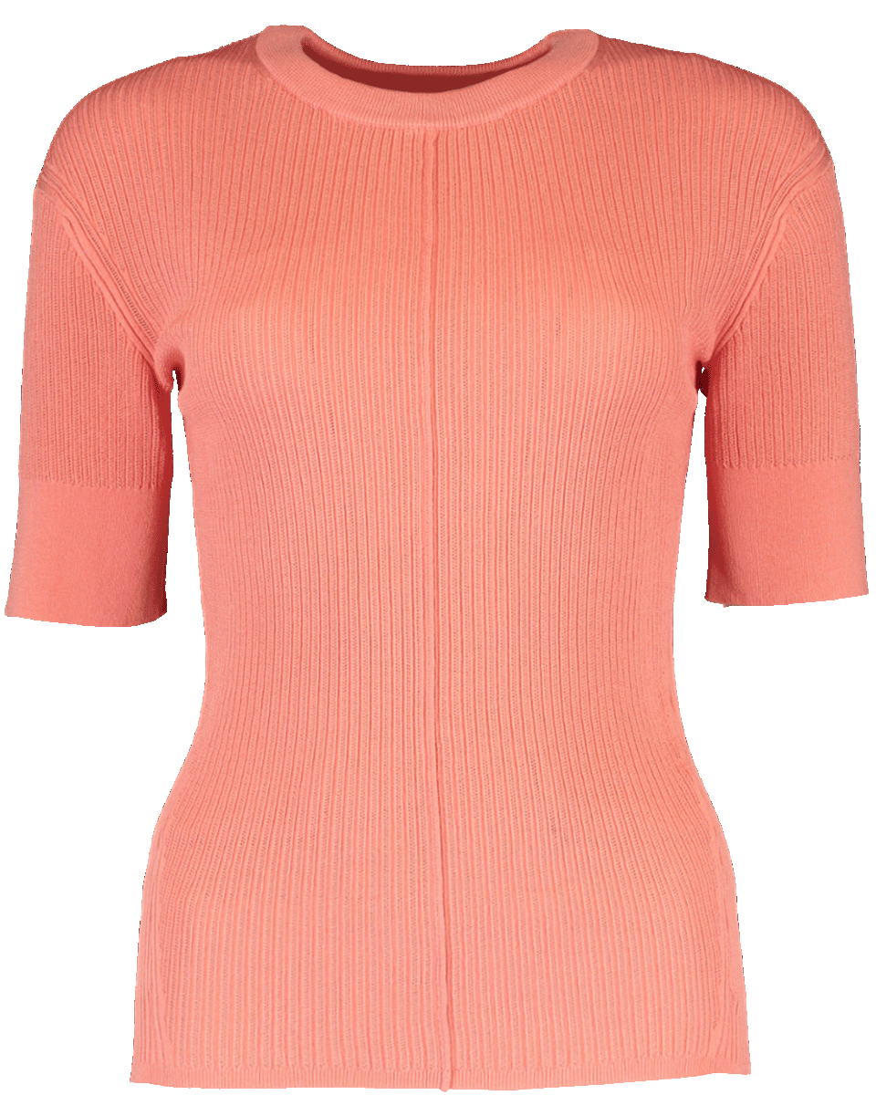 Super fine silk cotton knit top designed by Chloe. This top features a scoop neckline with elbow sleeves. The slim and sheer silhouette is best styled as a layering piece.