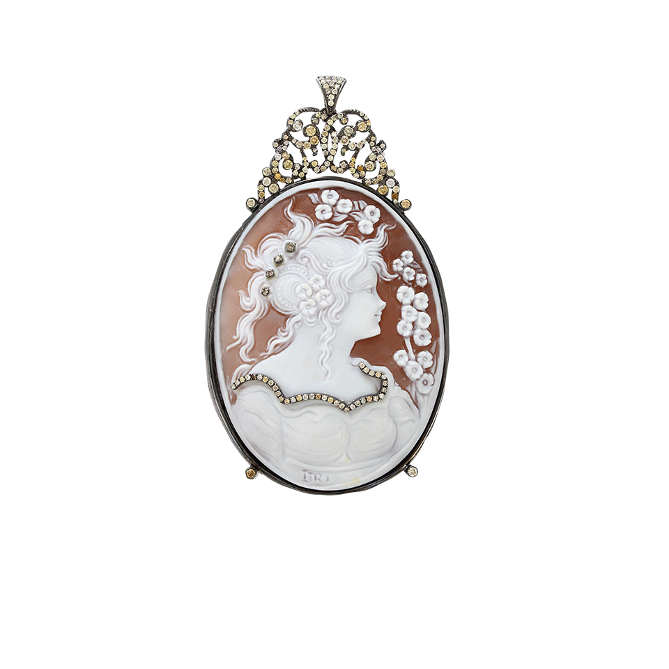 Adorn your favorite chain in heirloom essence and vintage glamour with Bochic's stone and shell cameo pendant necklace with diamonds.