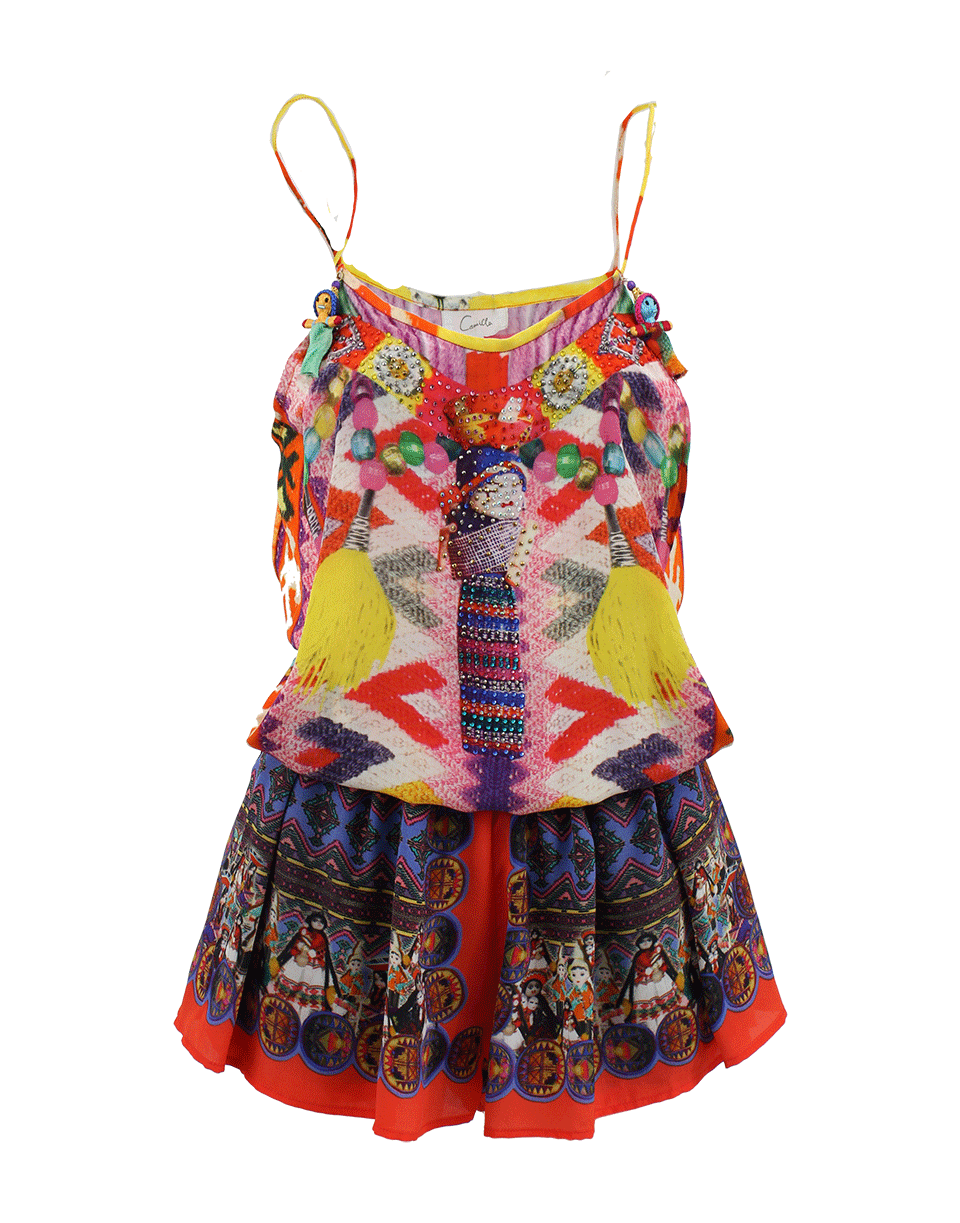 Fabric Doll Design Accents With Crystal Embellished Neckline