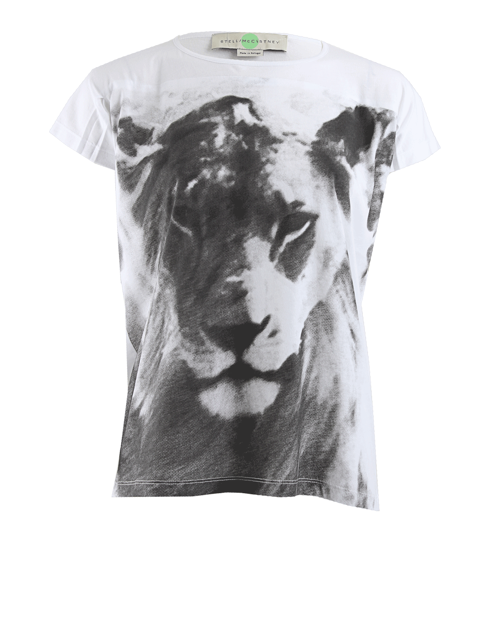 Satisfy your love for both prints and animals with Stella McCartney’s short sleeve boxy lion front tee.Paired with a colored, skinny jean, this top is easy to style.All you need to complete the look is ankle booties and your worn-in leather jacket.