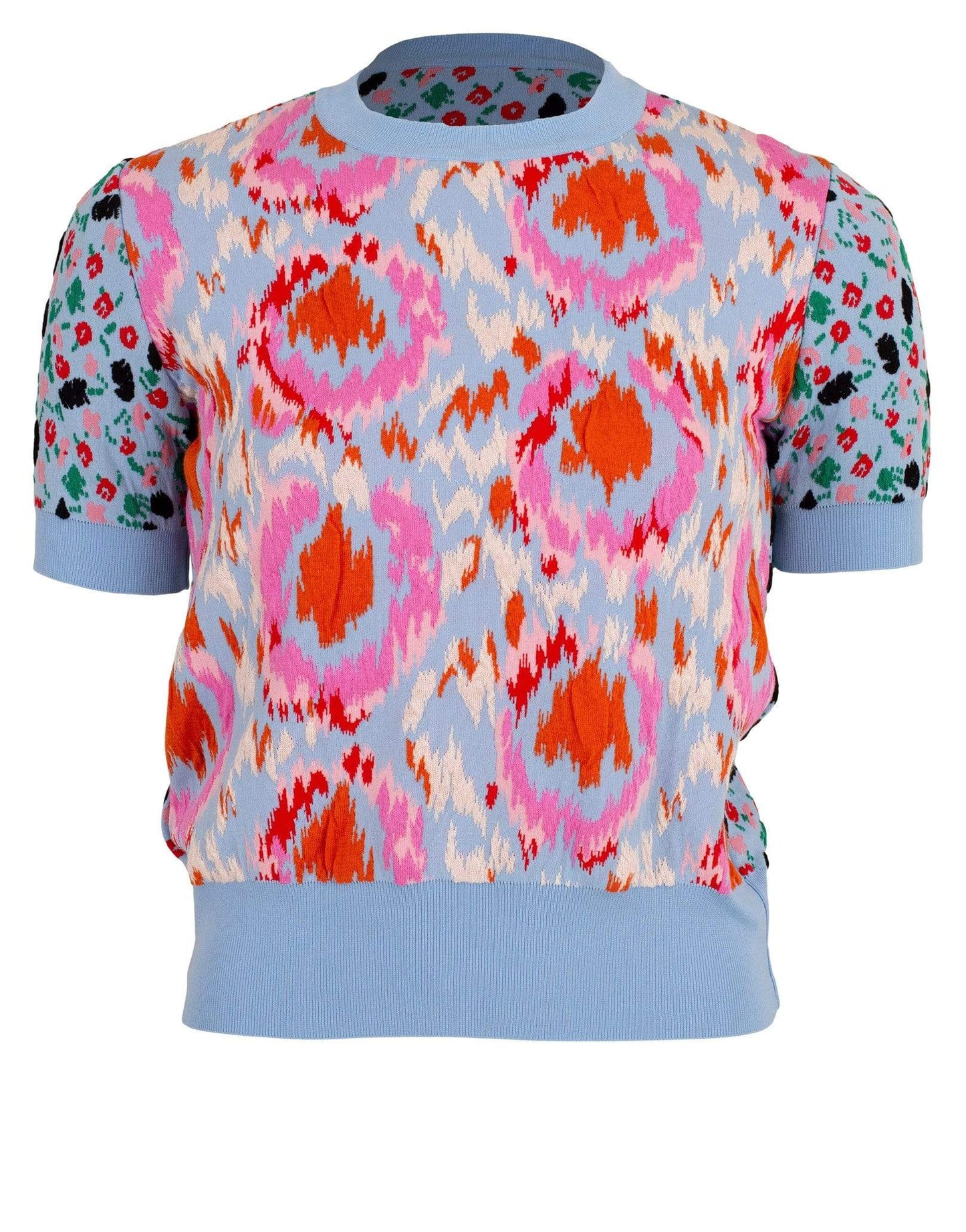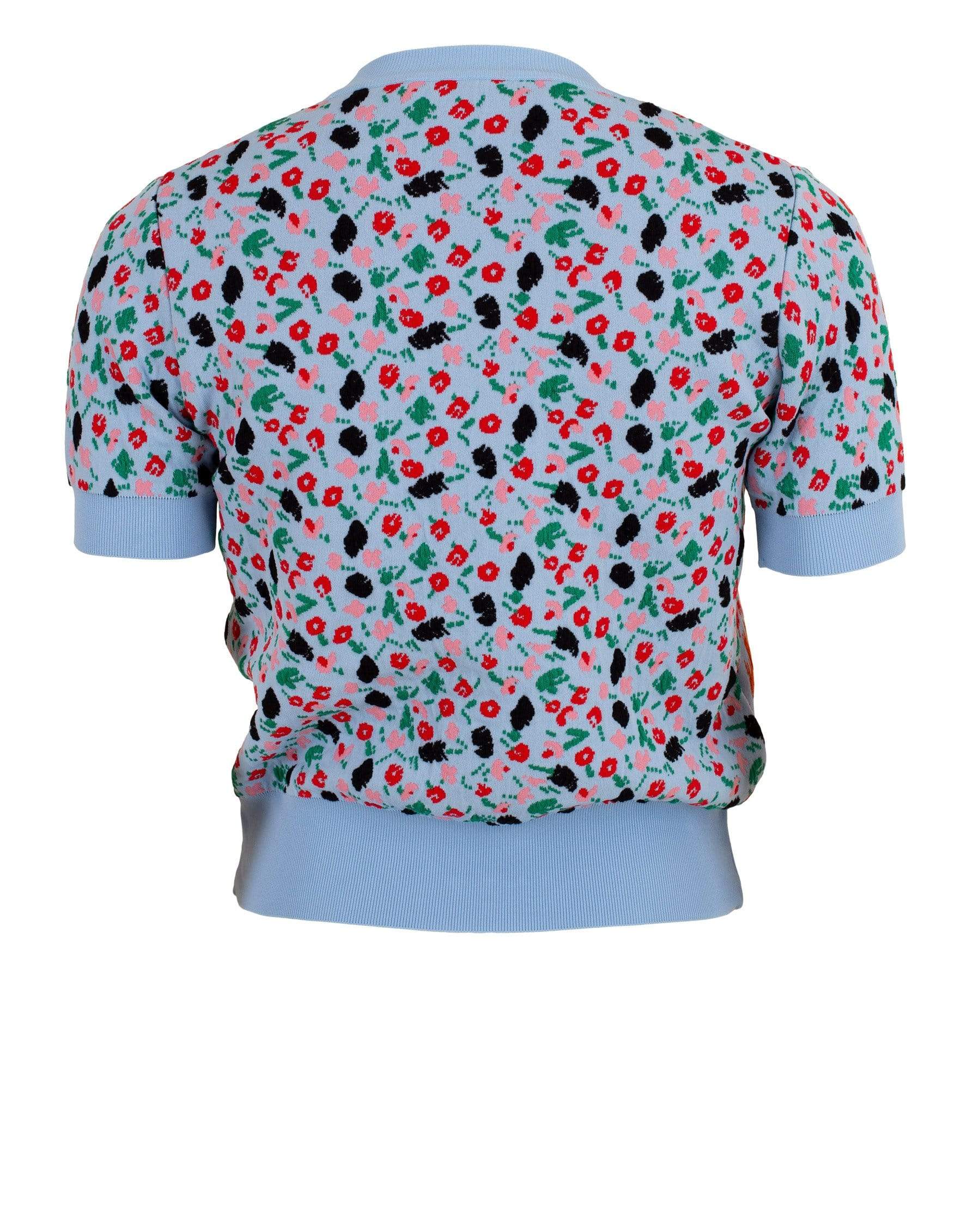 Marni short sleeve cotton floral print knit with a round neckline, contrasting trims, regular fit, and a pull-on style.