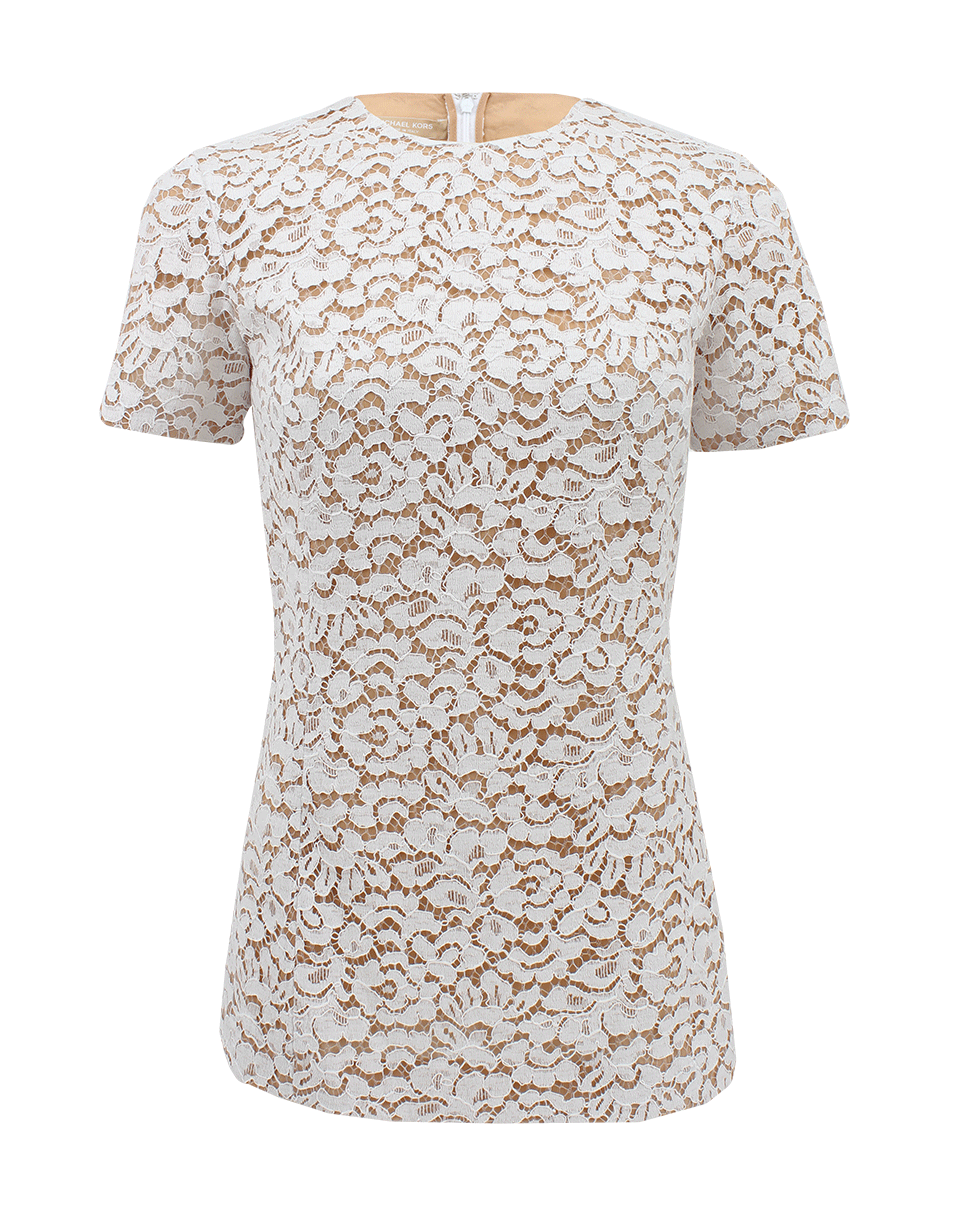 Get laced in romantically sleek style with Michael Kors' short sleeve shell top.