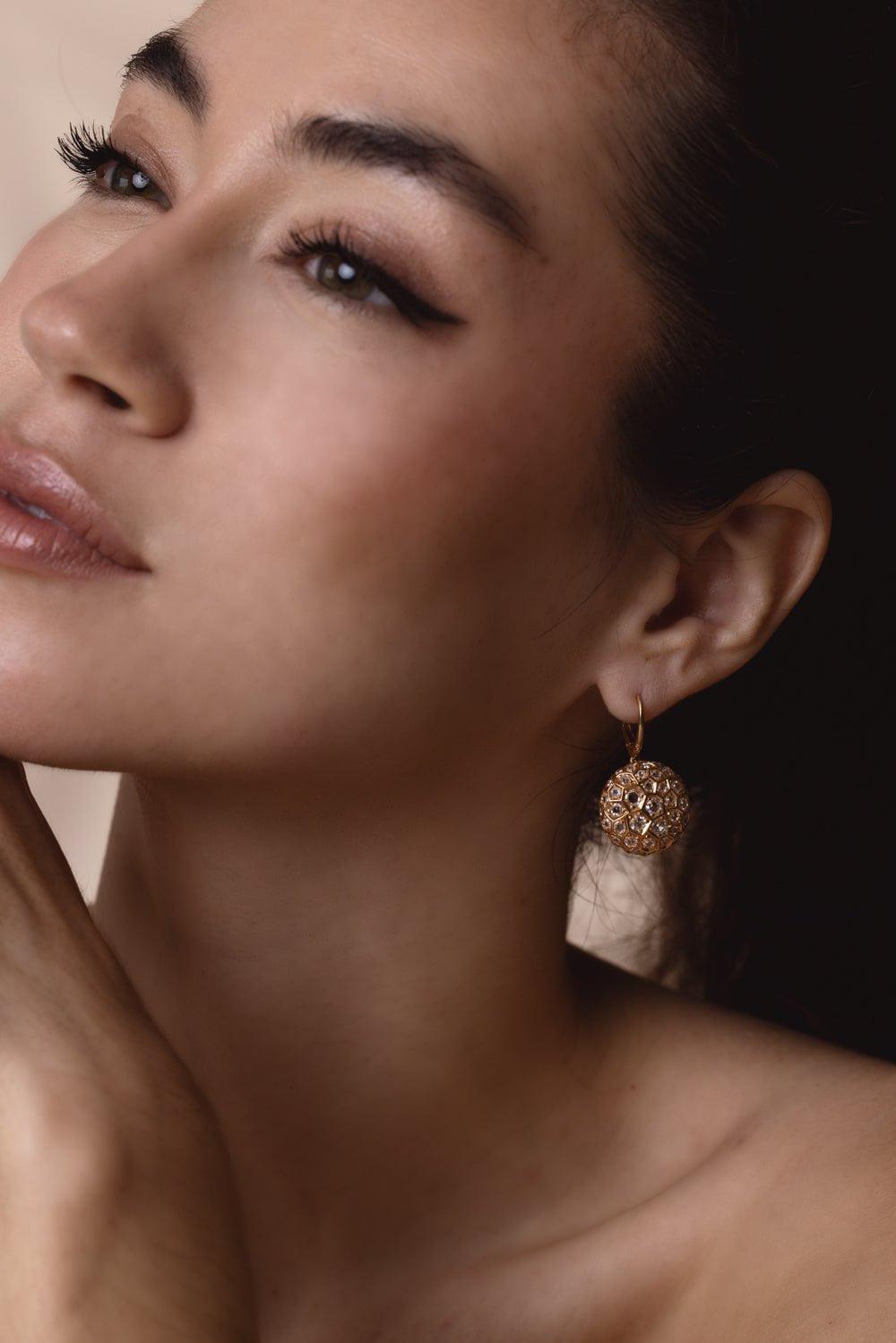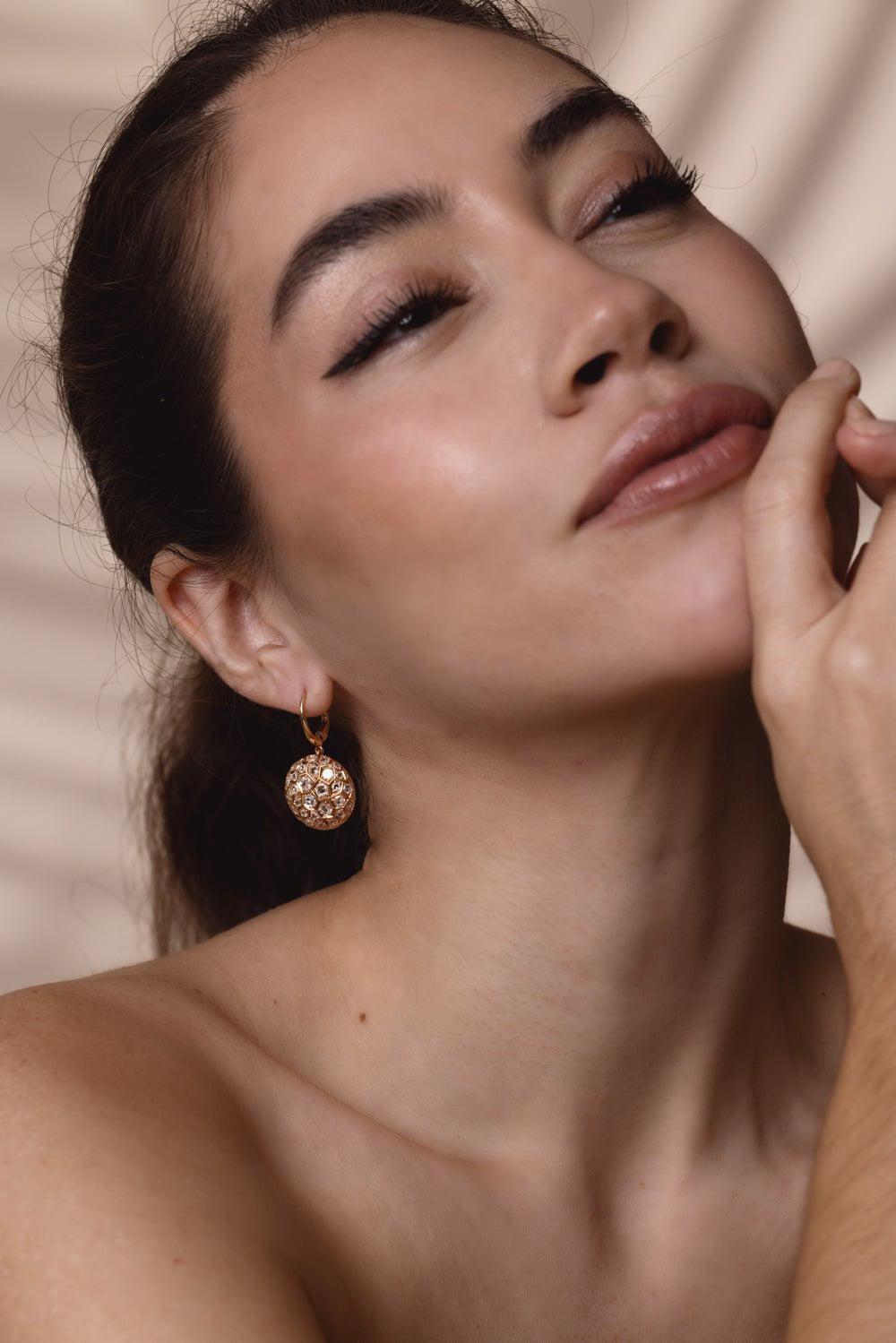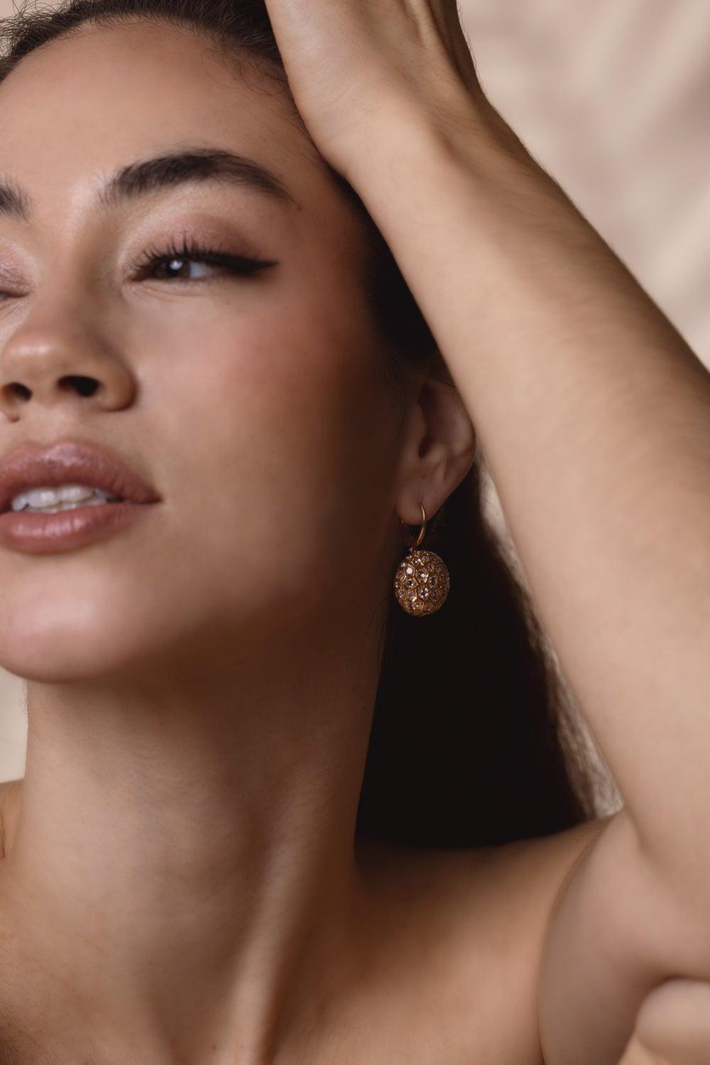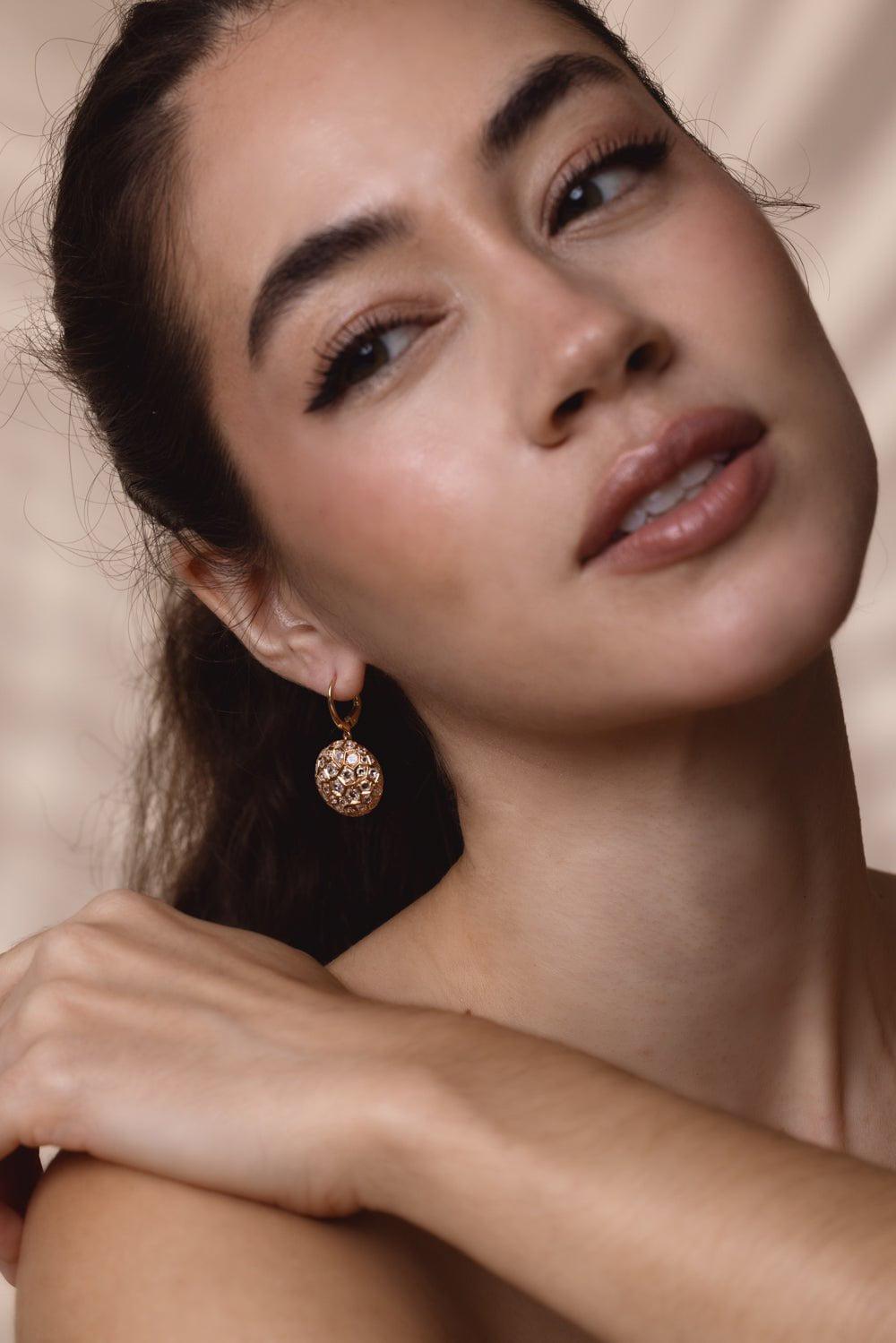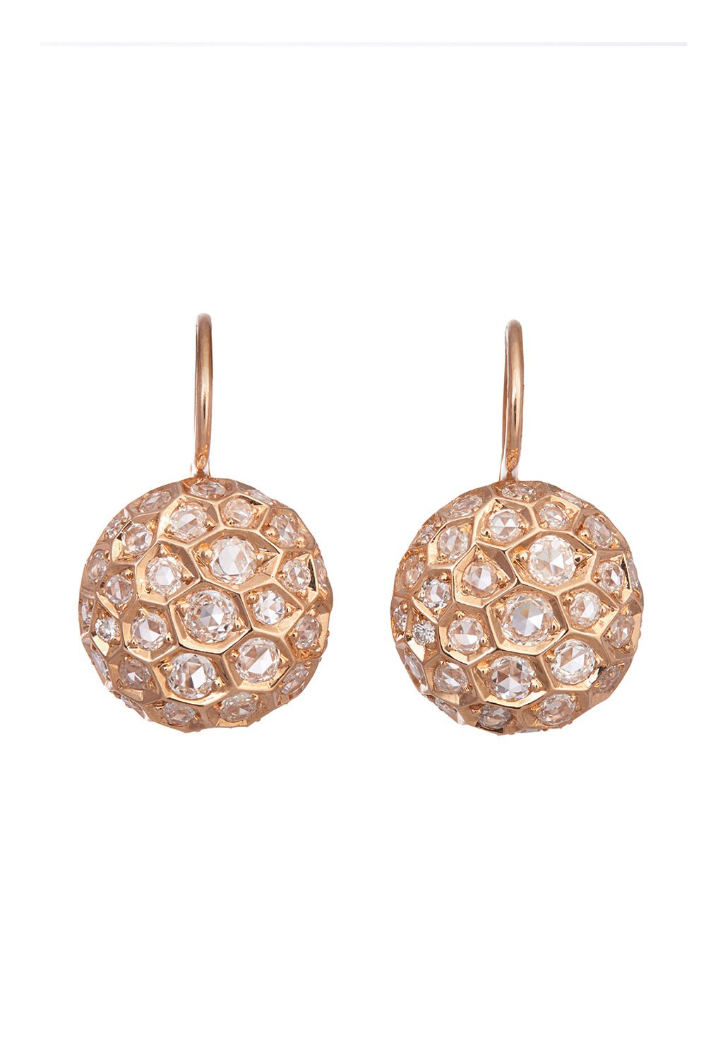 Sidney Garber large honeycomb diamond earrings in rose gold.