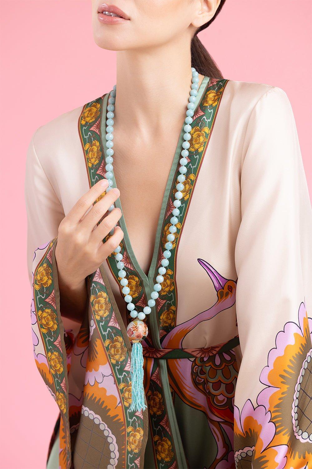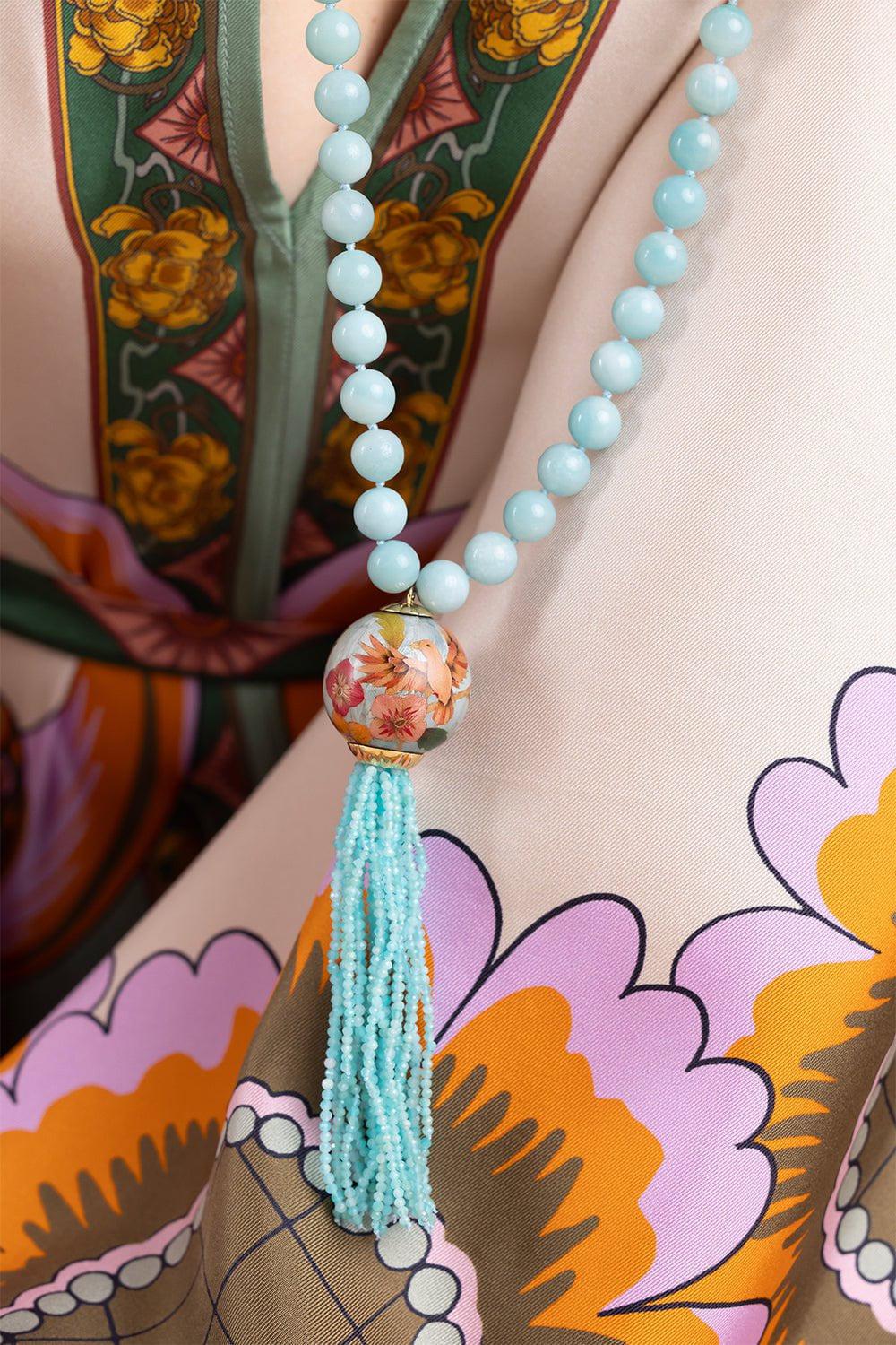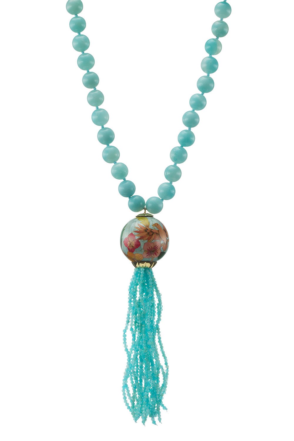Silvia Furmanovich amazonite marquetry tassel necklace in yellow gold.