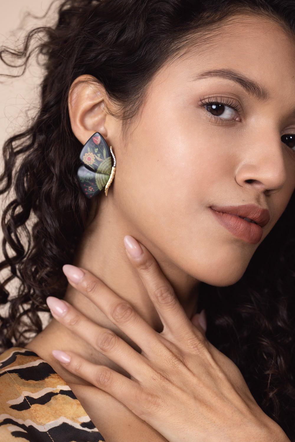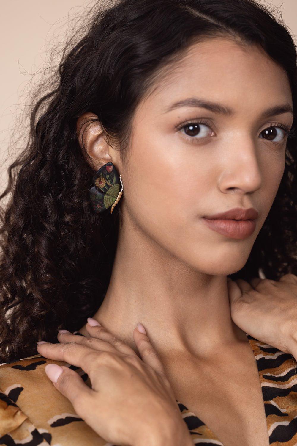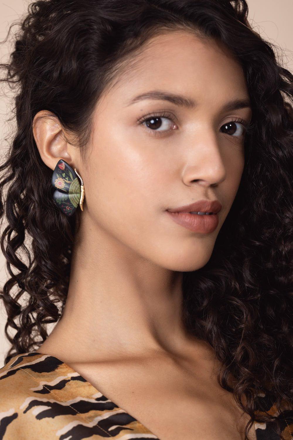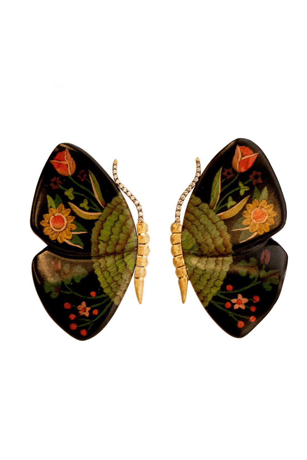 Silvia Furmanovich black marquetry butterfly earrings in yellow gold.