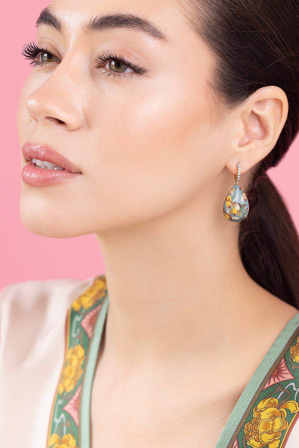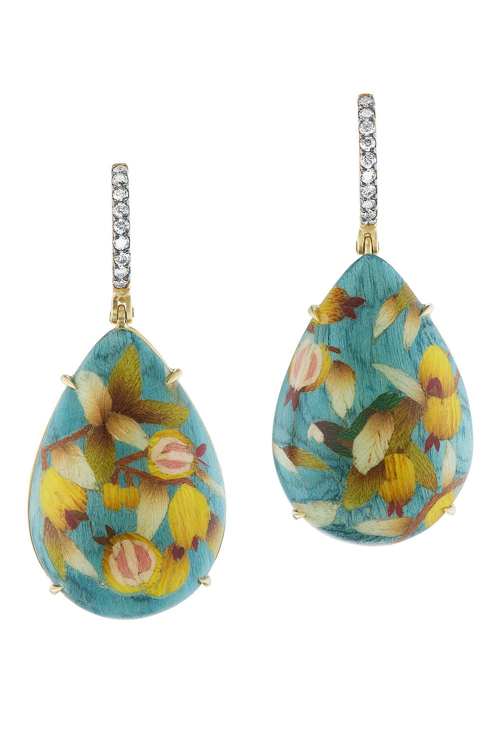 Silvia Furmanovich mini marquetry diamond drop earrings in yellow gold.