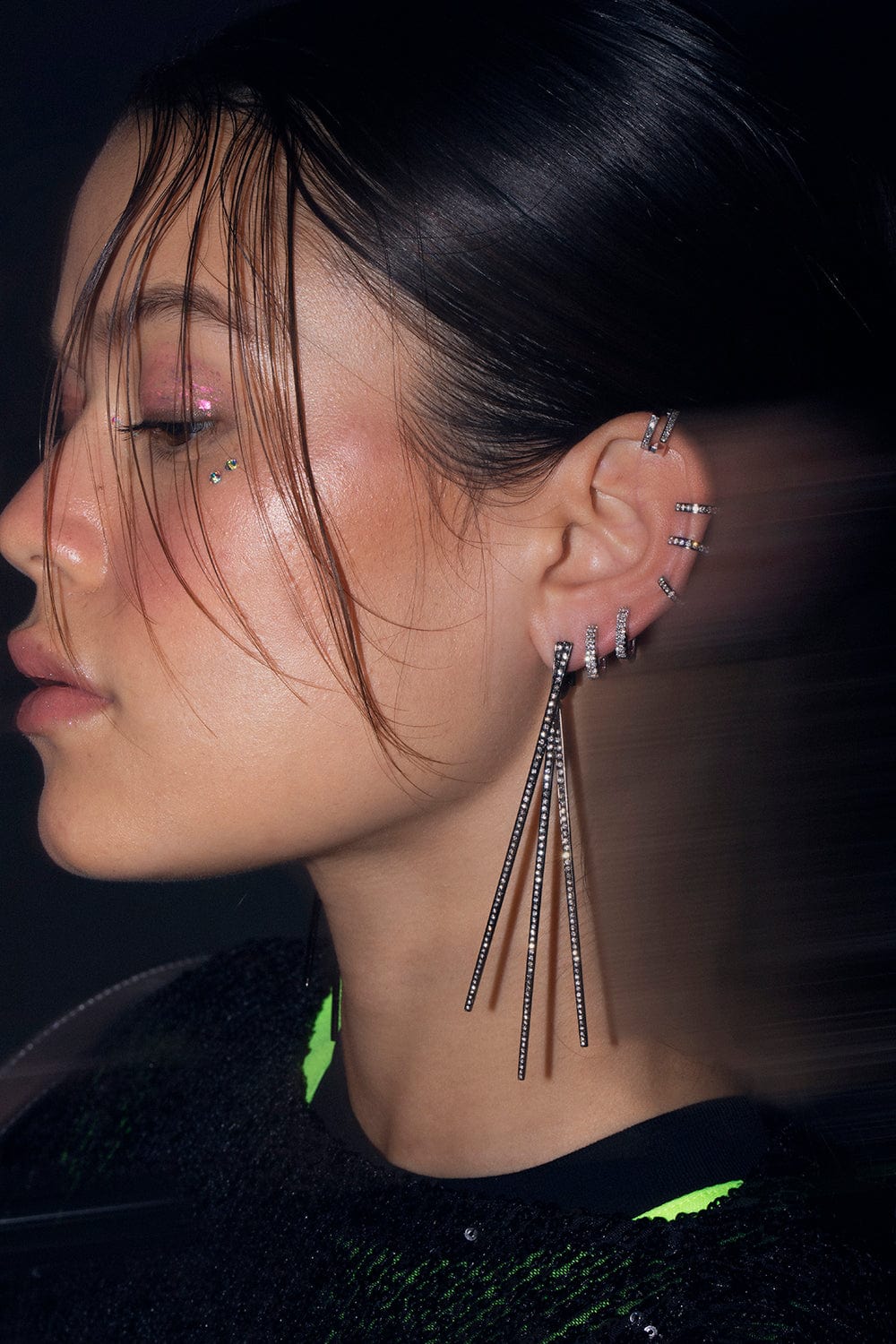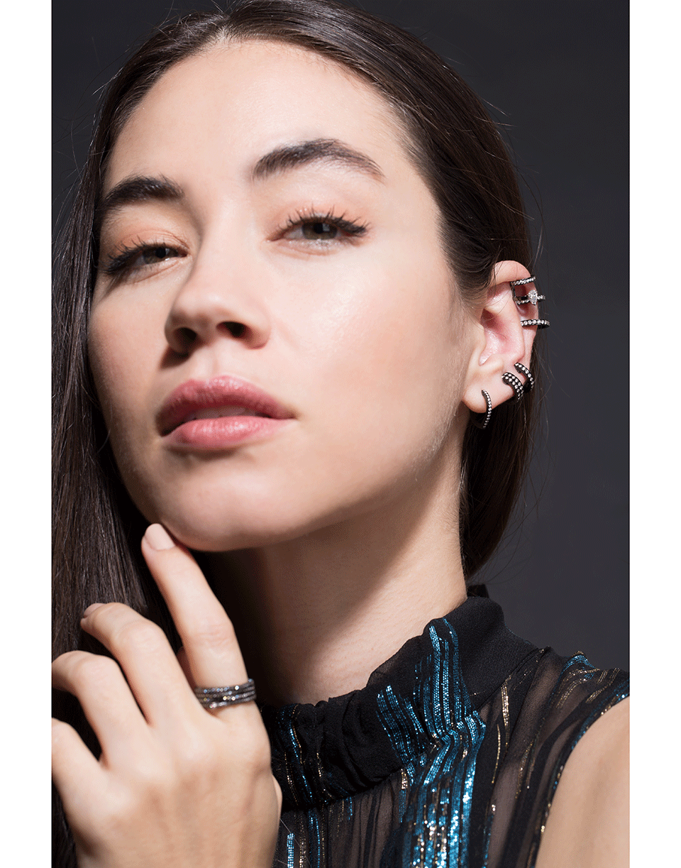 Repossi Antifer Earring one half-paved row in black gold and plated white gold. For pierced ears.