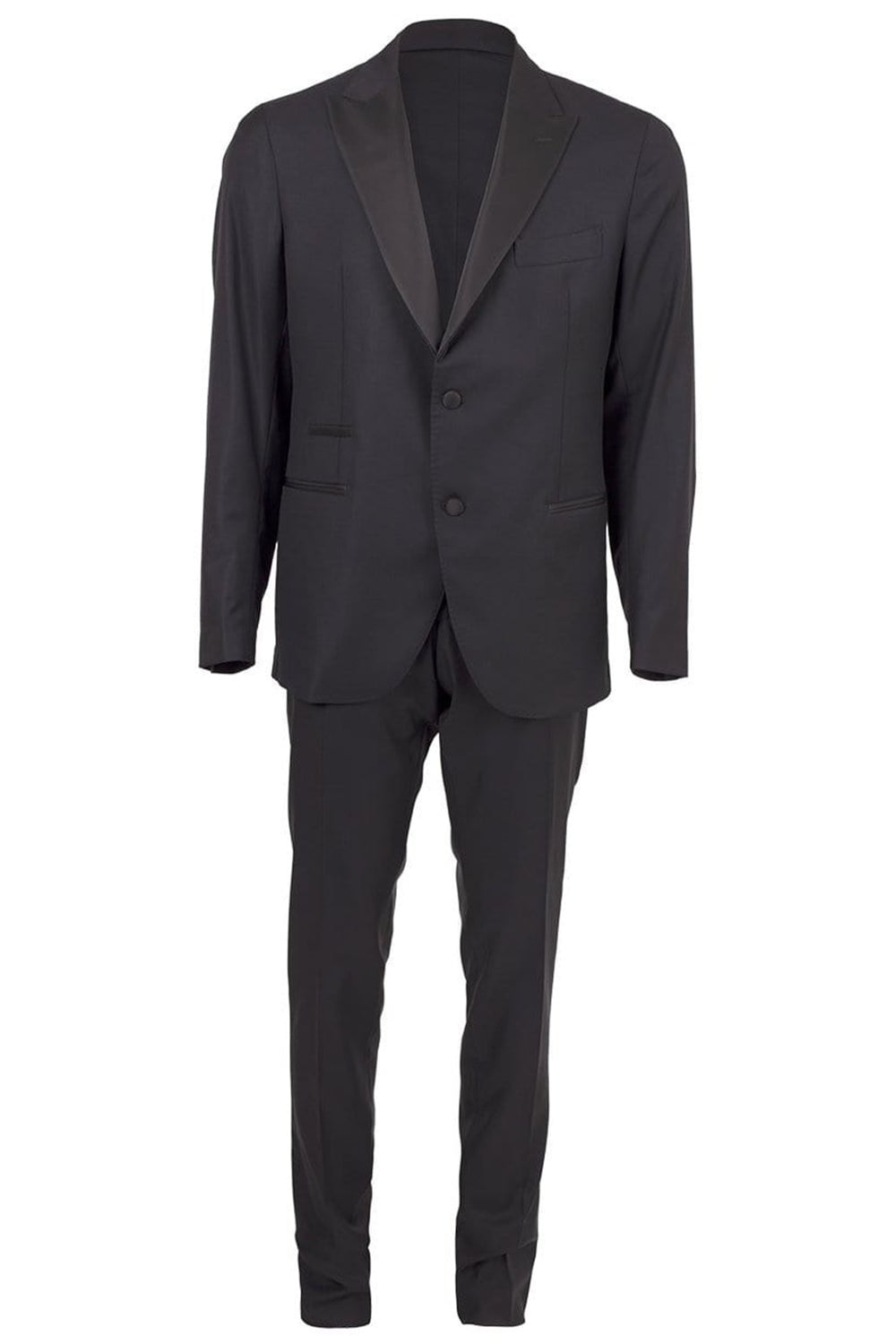 Single breasted smoking suit from Eleventy featuring classic lapels, front button fastening, long sleeves, a chest pocket, side pockets, waistband with belt loops, slim leg, concealed front fastening, side pockets and a regular length.