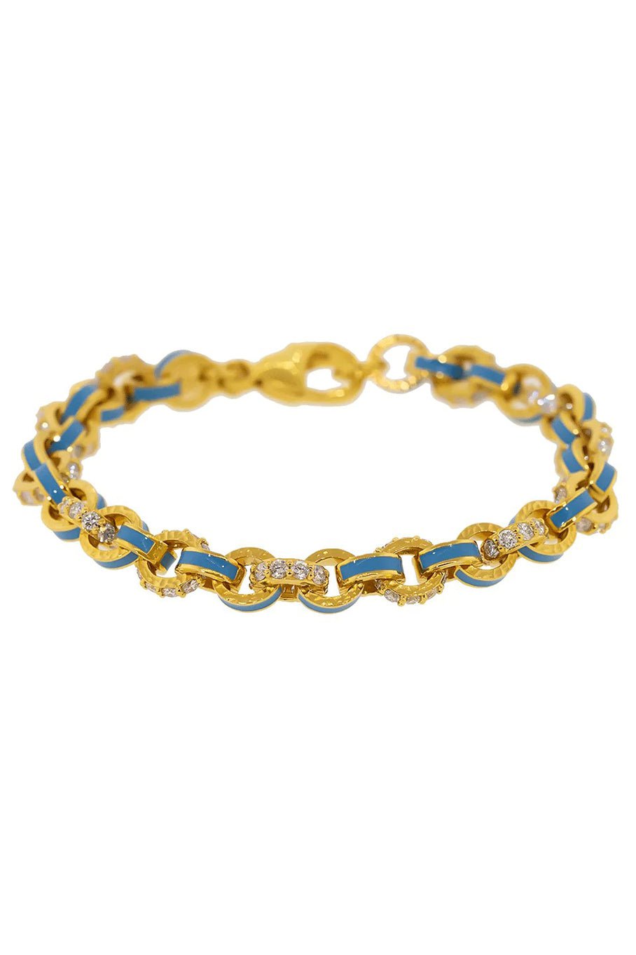 Buddha Mama sky blue enamel and pave diamond link bracelet set in 20k yellow gold.