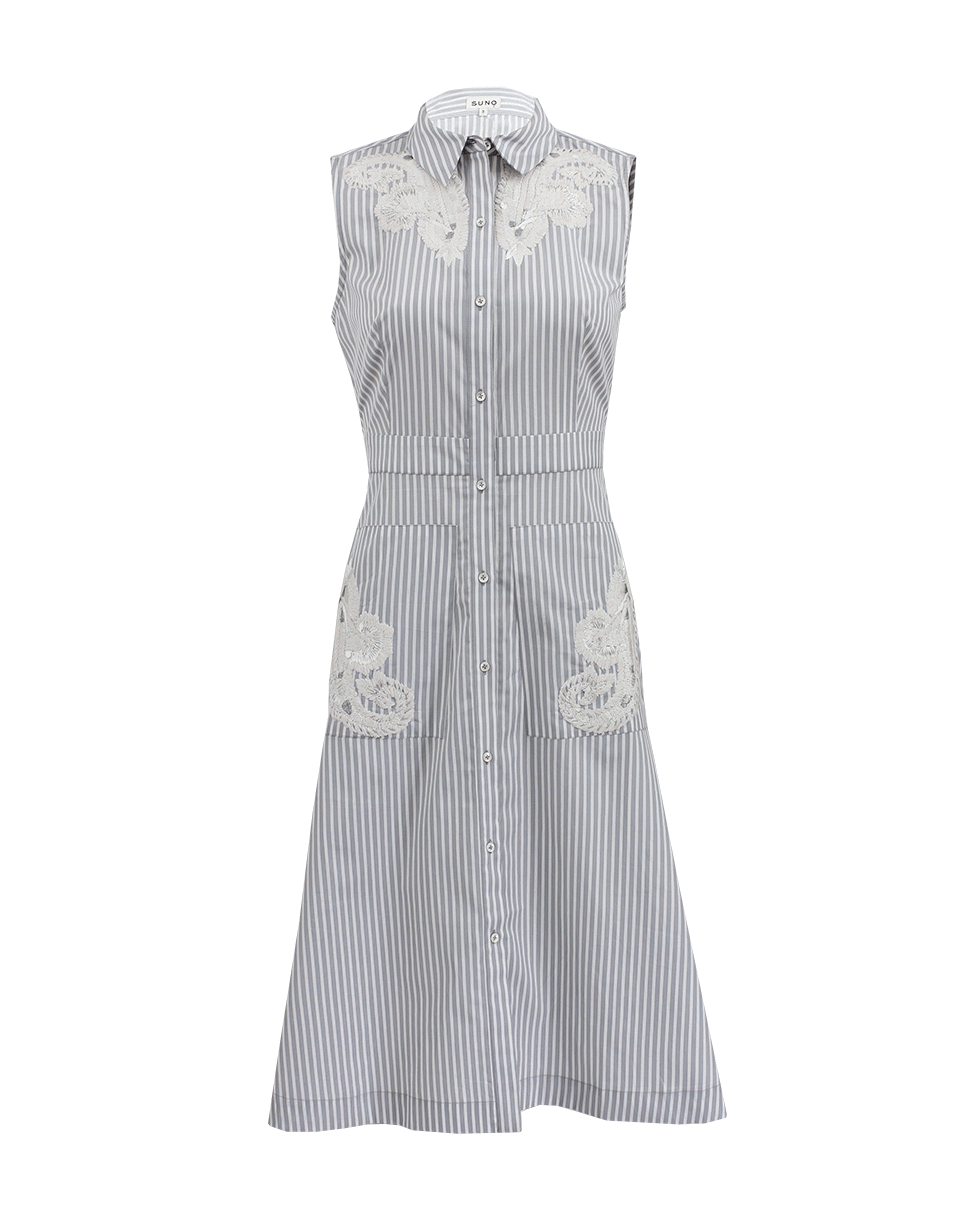 Classically feminine with a nautical touch, Suno's sleeveless button down stripe dress is nothing short of stunning.