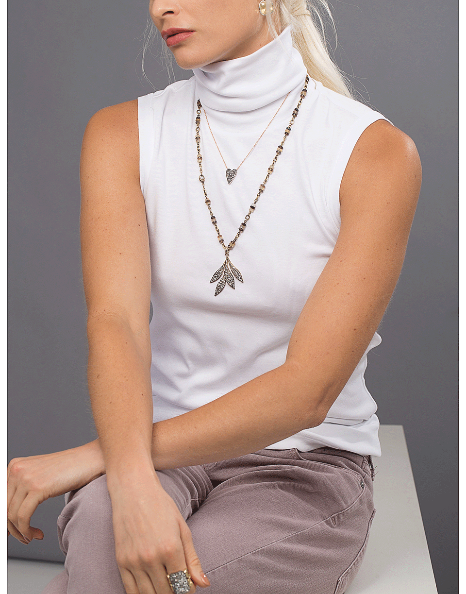 This ribbed cotton turtleneck from Brunello Cucinelli features a sleeveless cut with a high neckline, fitted silhouette, and monili bead details along the neckline.