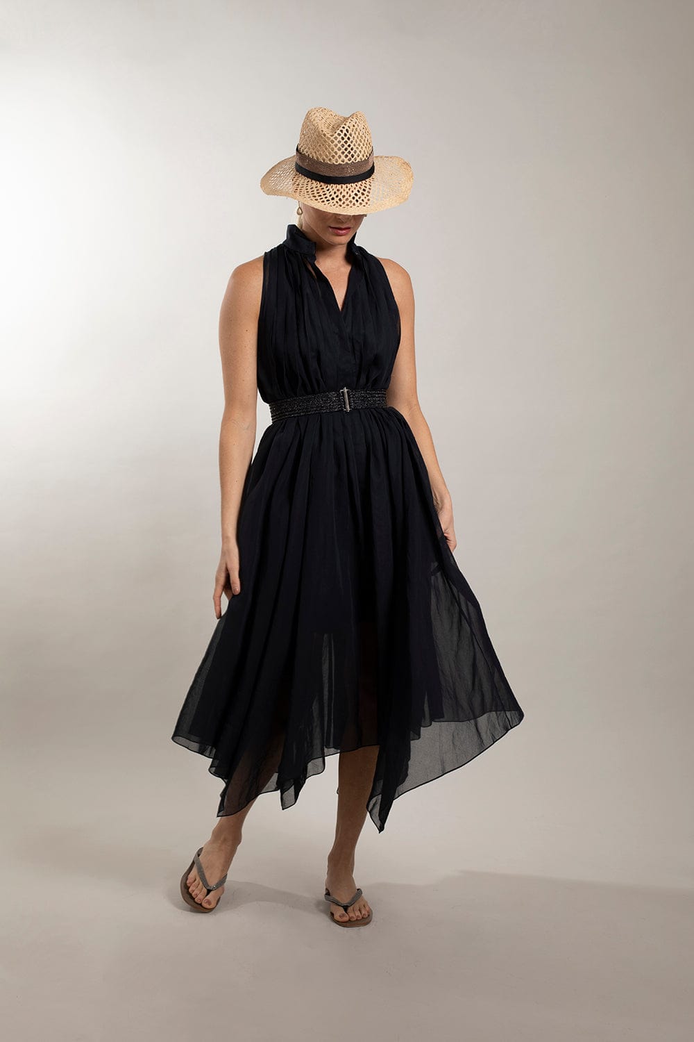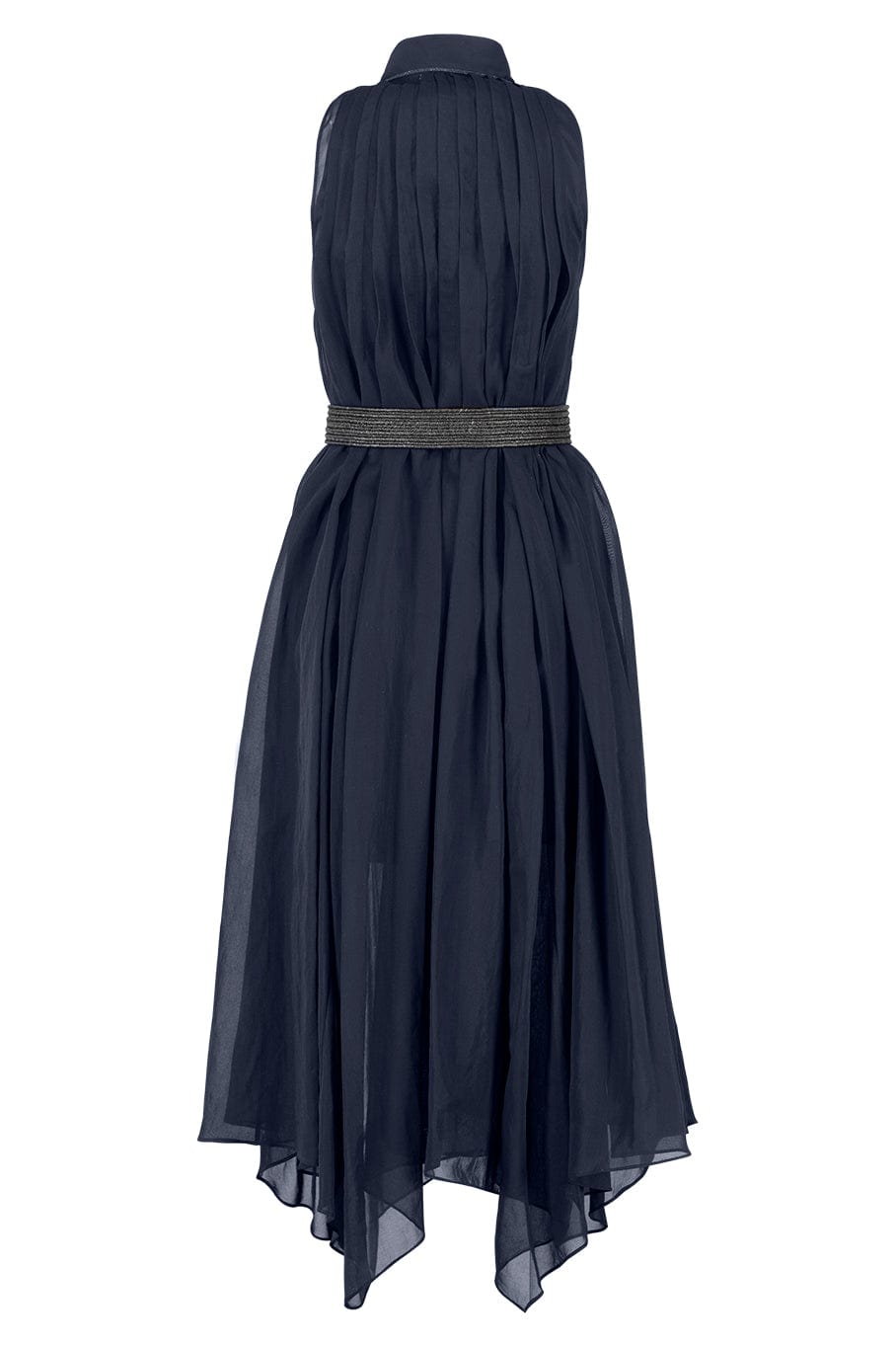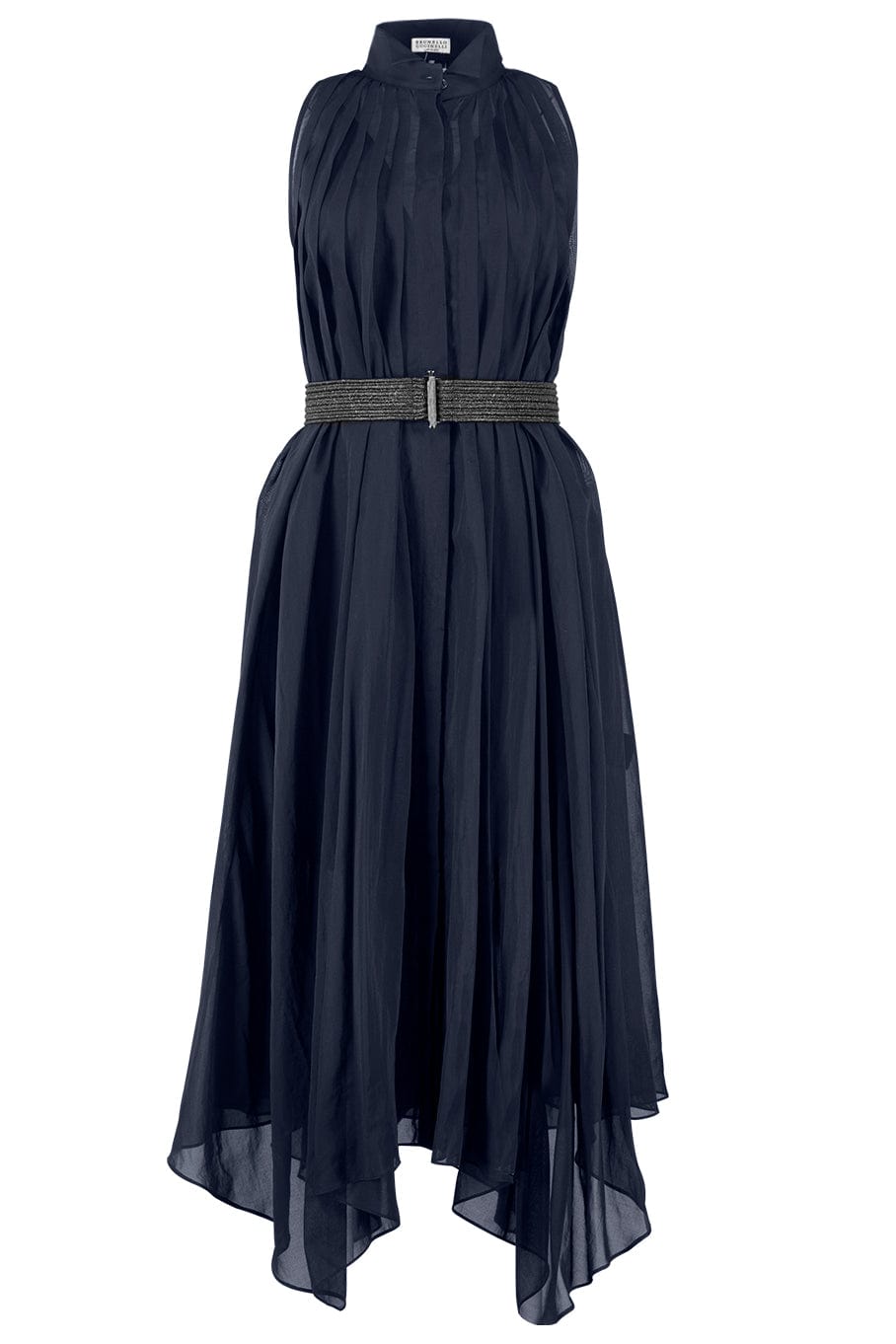 Brunello Cucinelli sleeveless dress with belt in blue.