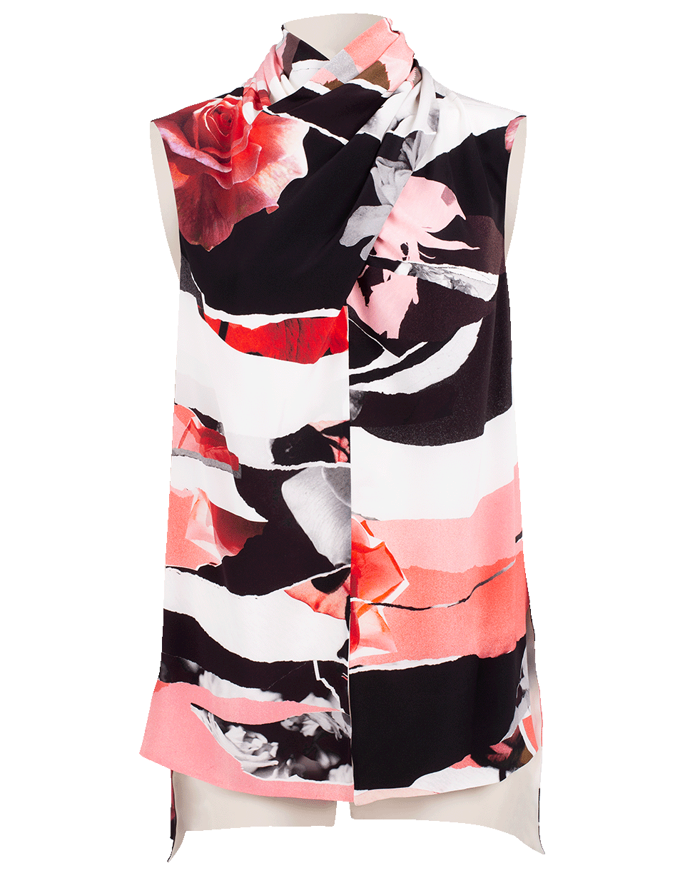 Alexander McQueen's sleeveless printed top features a tunic style with a cowl neckline, loose fit and a painterly print throughout.