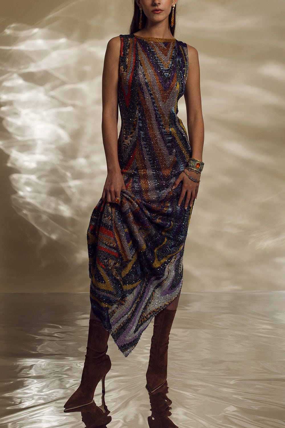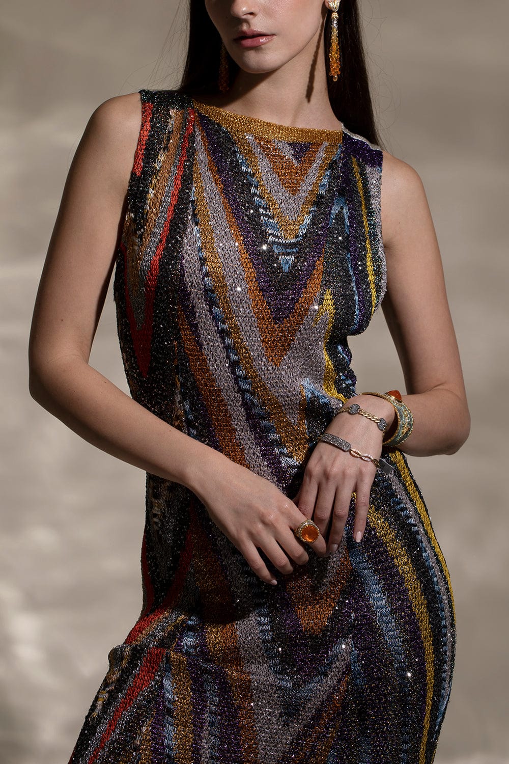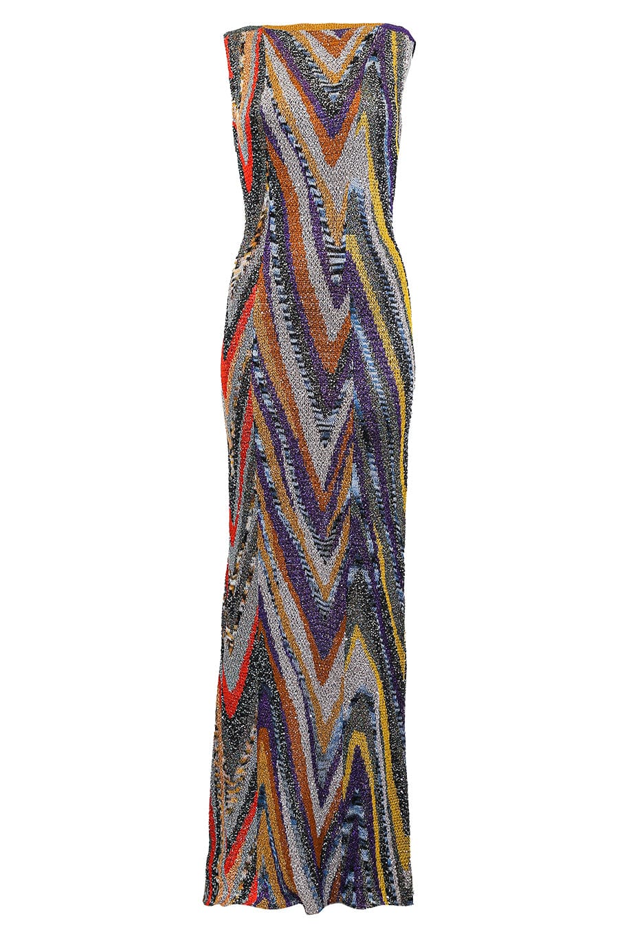 Missoni sleeveless lame zig zag maxi dress in multi.