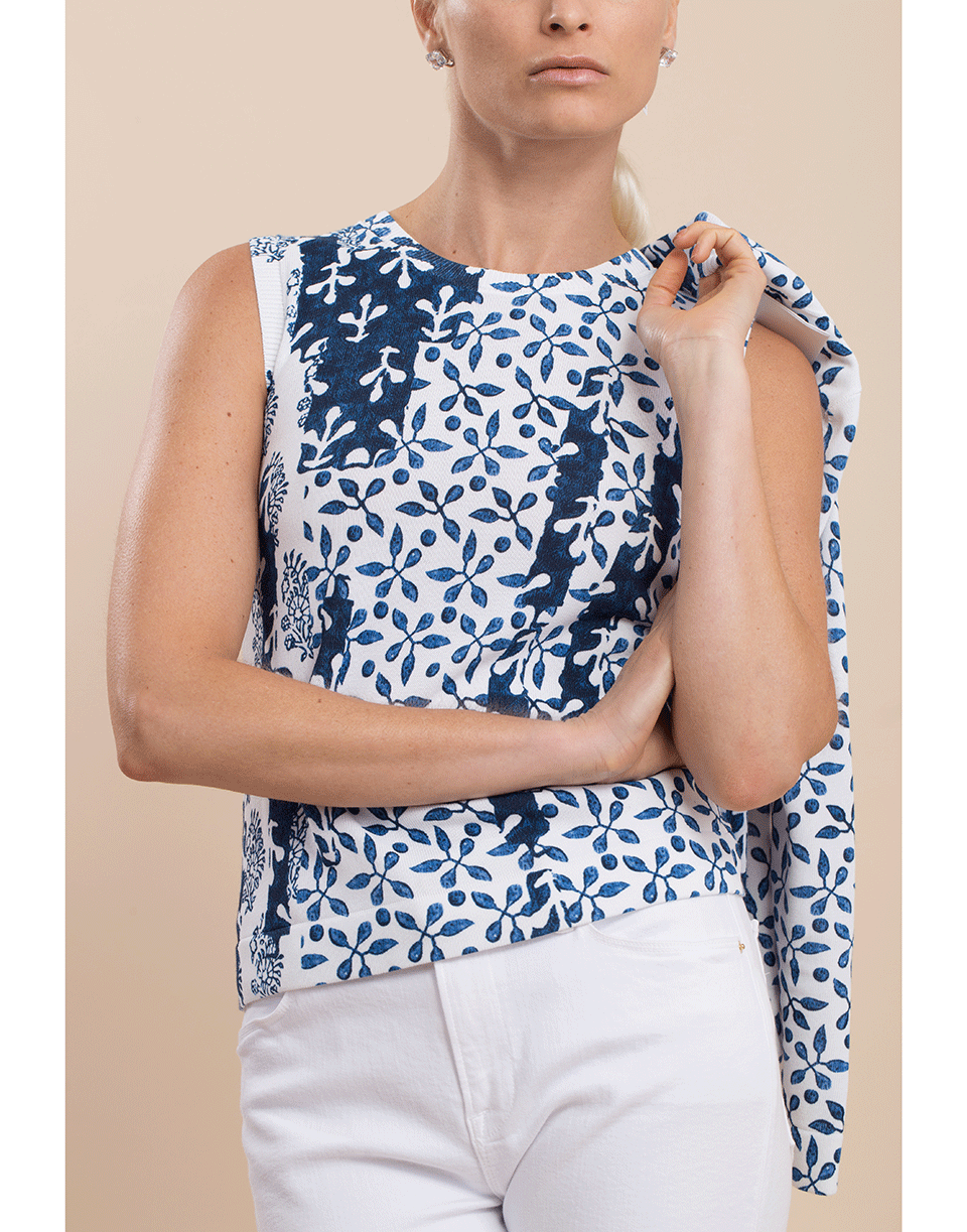 Sleeveless patchwork tank top from Oscar de la Renta featuring a crewneck, regular fit, pullover design, and ribbed trims.